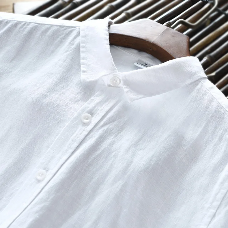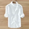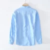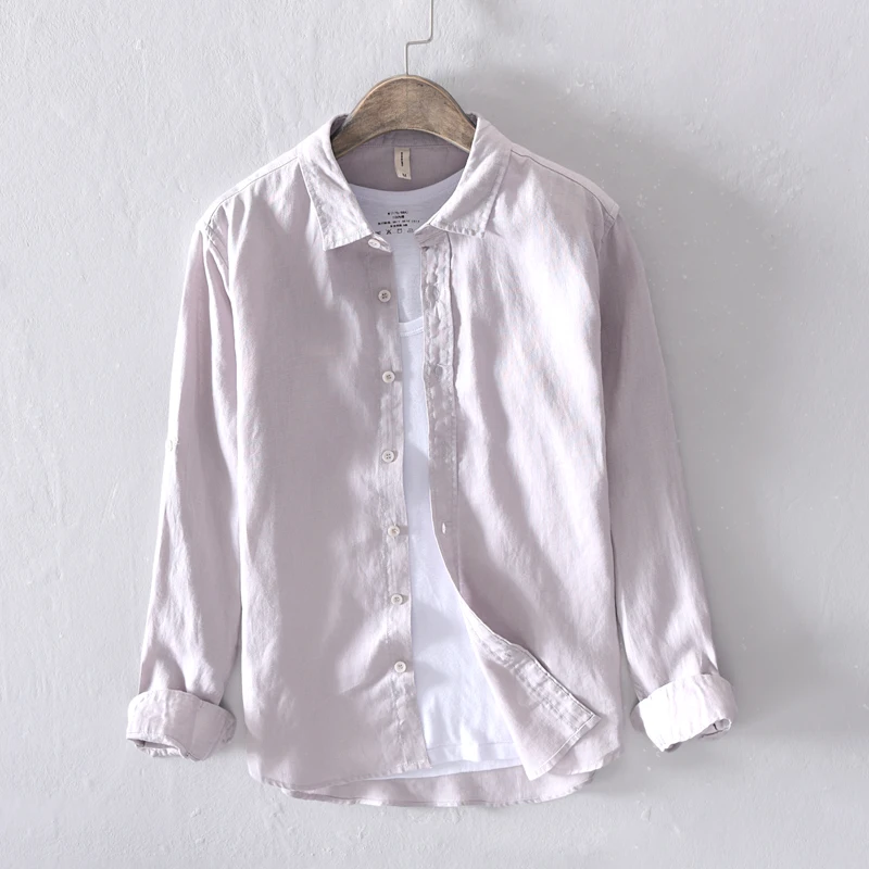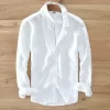 Linen Long Sleeve Shirt Men Casual Style Office Wear Four Seasons