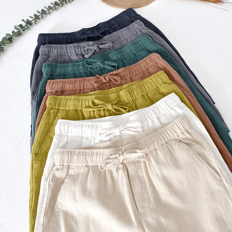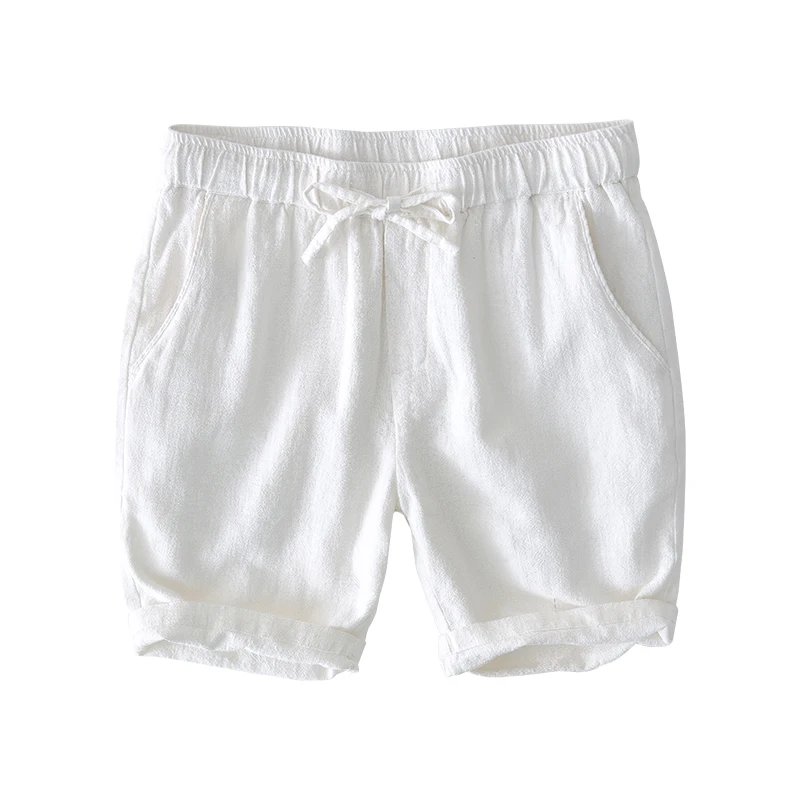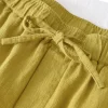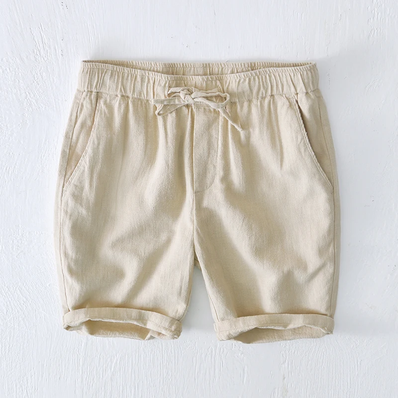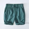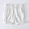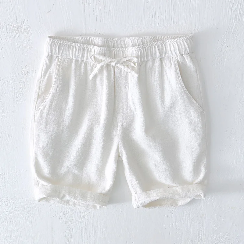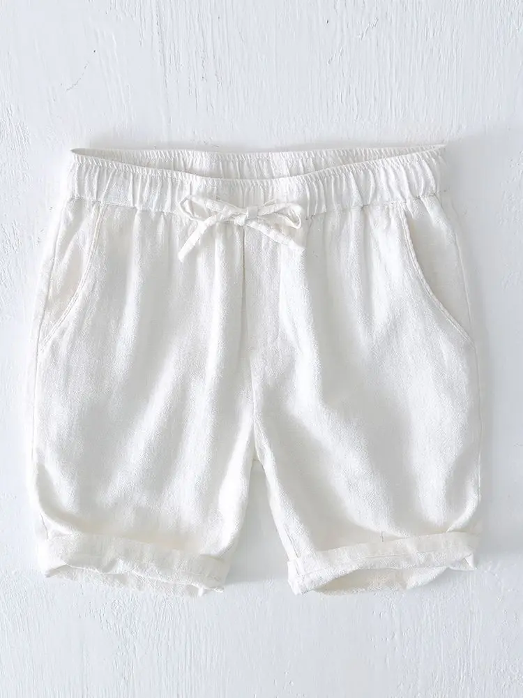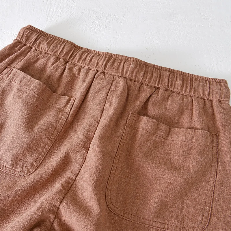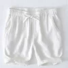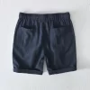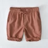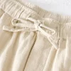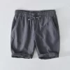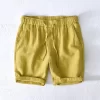 Men Casual Elastic Waist Linen Shorts Knee Length Loose Fit