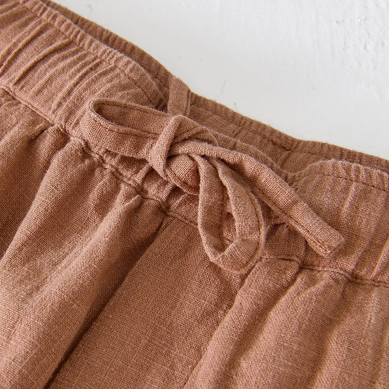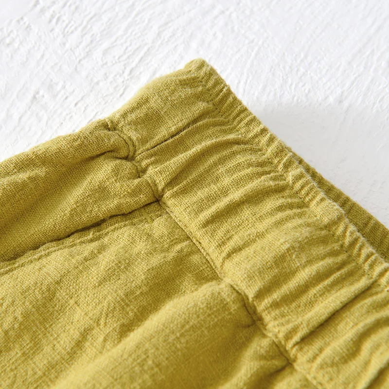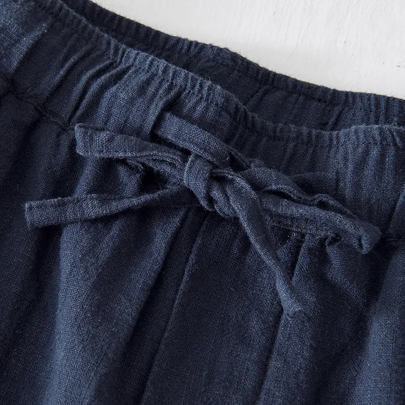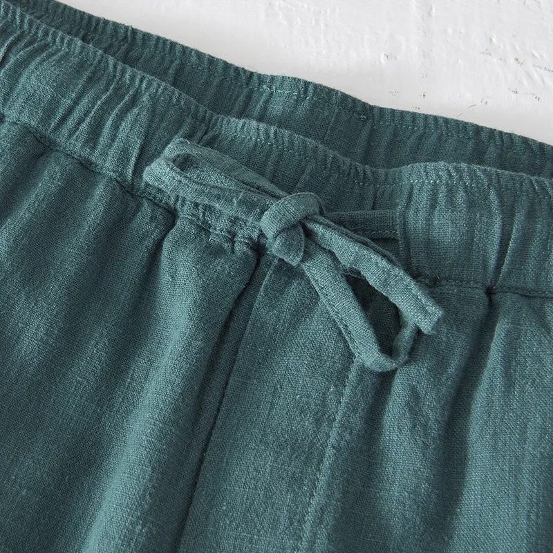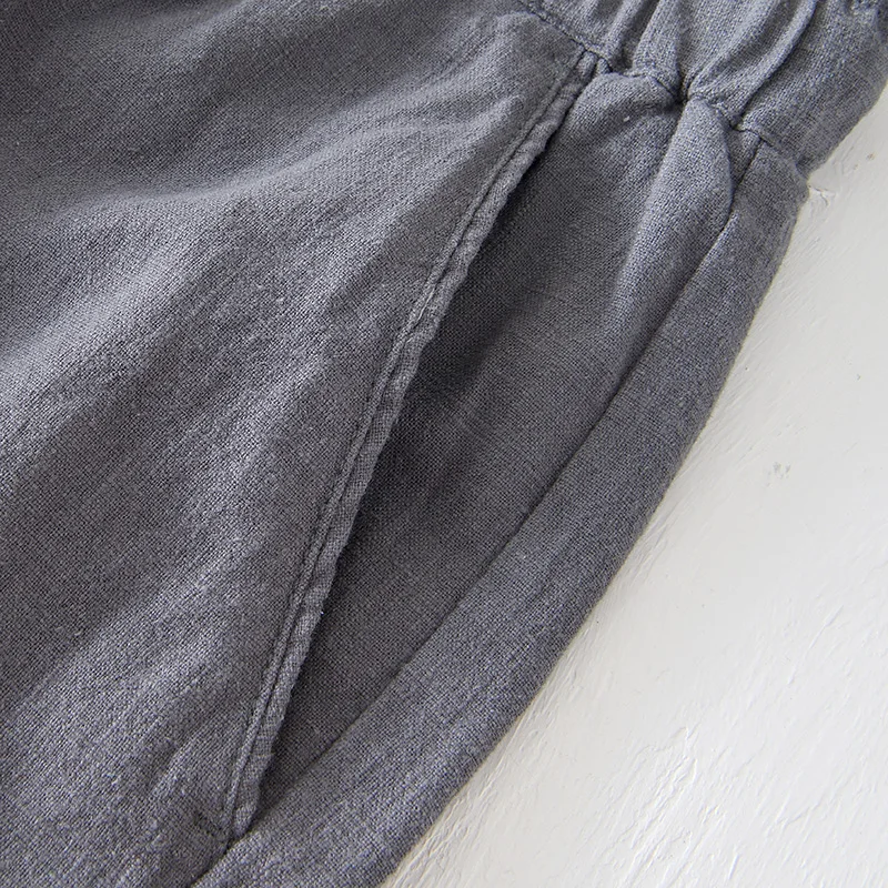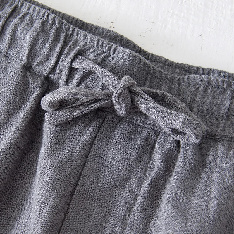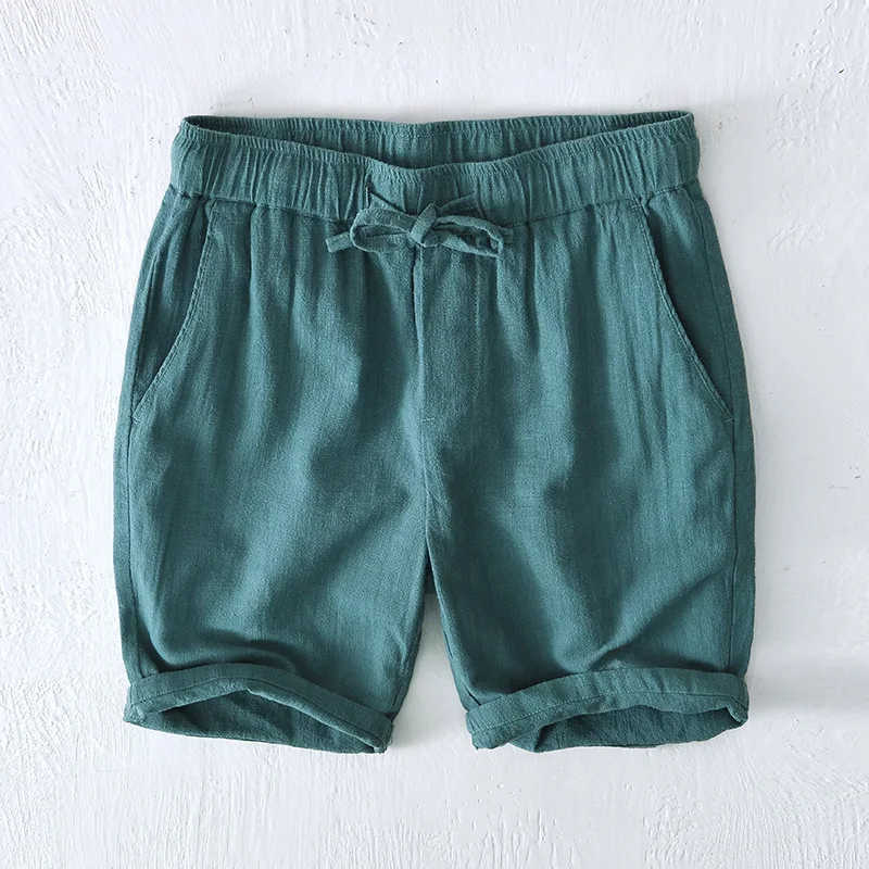 Men Casual Elastic Waist Linen Shorts Knee Length Loose Fit