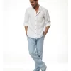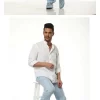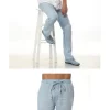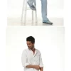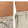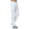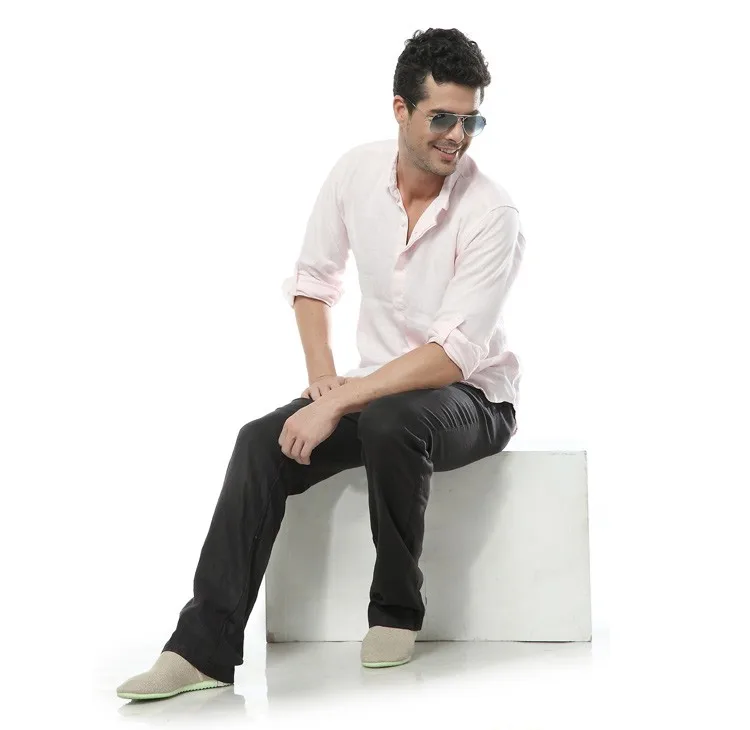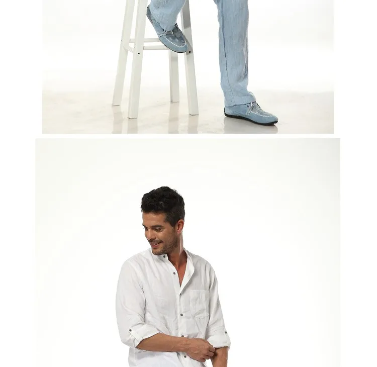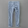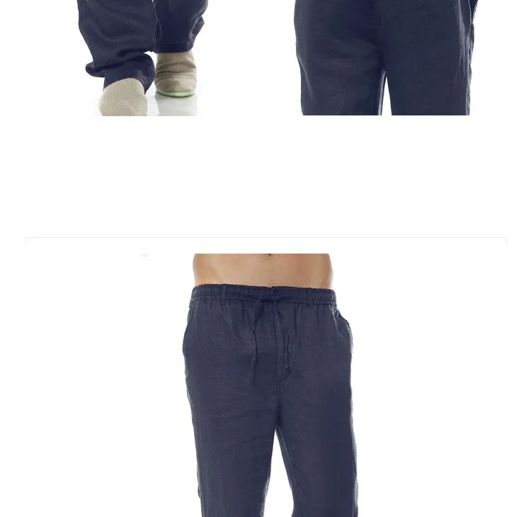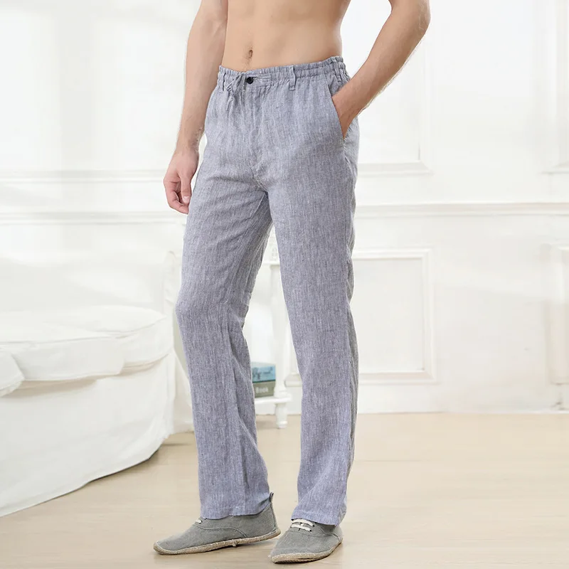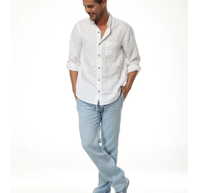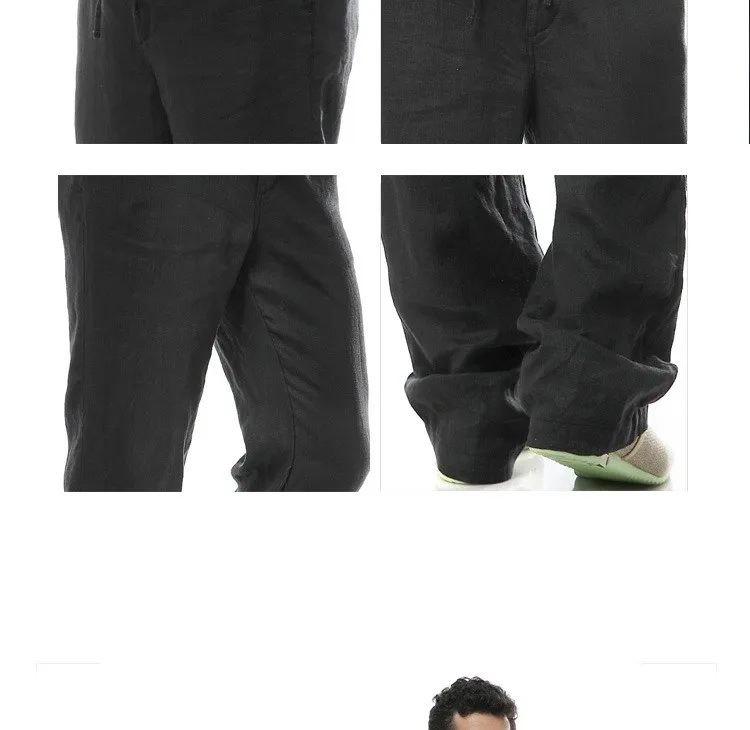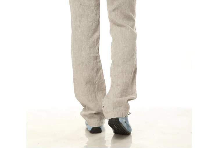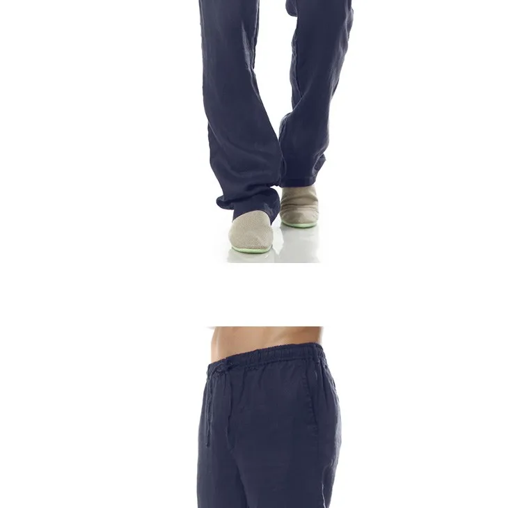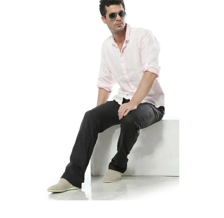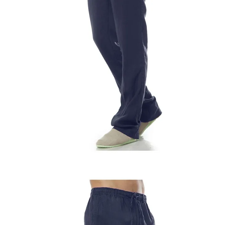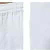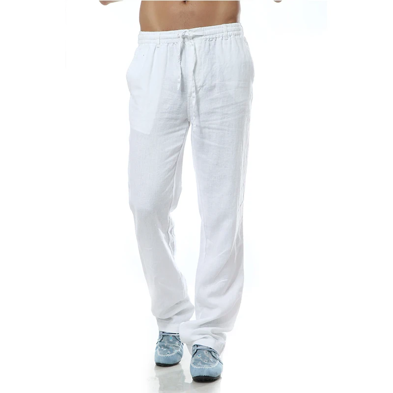 These men’s casual linen pants offer a loose fit for maximum comfort. Made from 100% linen, they are lightweight and suitable for all seasons. The elastic waist ensures a snug fit, while the flat front style gives a clean look. Perfect for casual outings, these pants come in various colors and have ribbon decorations for a stylish touch.