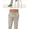 Men Linen Casual Elastic Waist Straight Pants Full Length