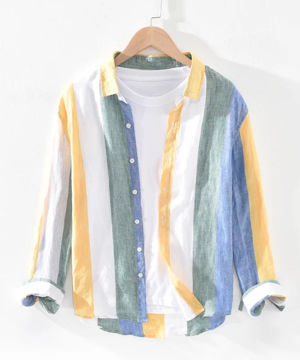 This men’s casual shirt mixes 55% linen and 45% cotton for breathable, year – round comfort. It has a classic turn – down collar, long regular sleeves, and a single – breasted button closure in solid colors (Blue, Gray, Dark Gray, Green, White). Great for daily life, beach trips, or laid – back moments, this shirt suits all four seasons with its relaxed, timeless design.