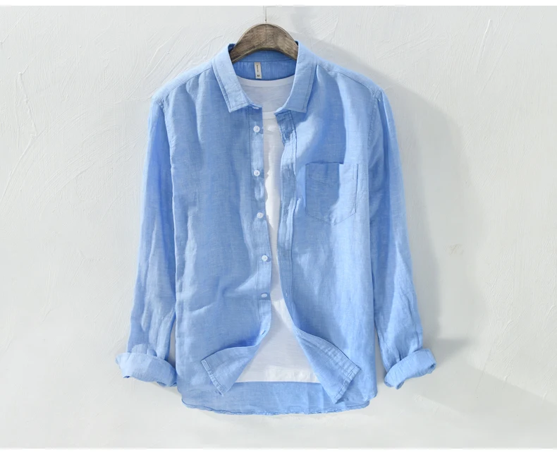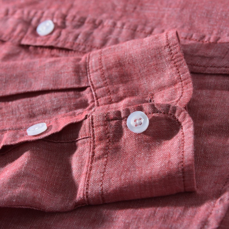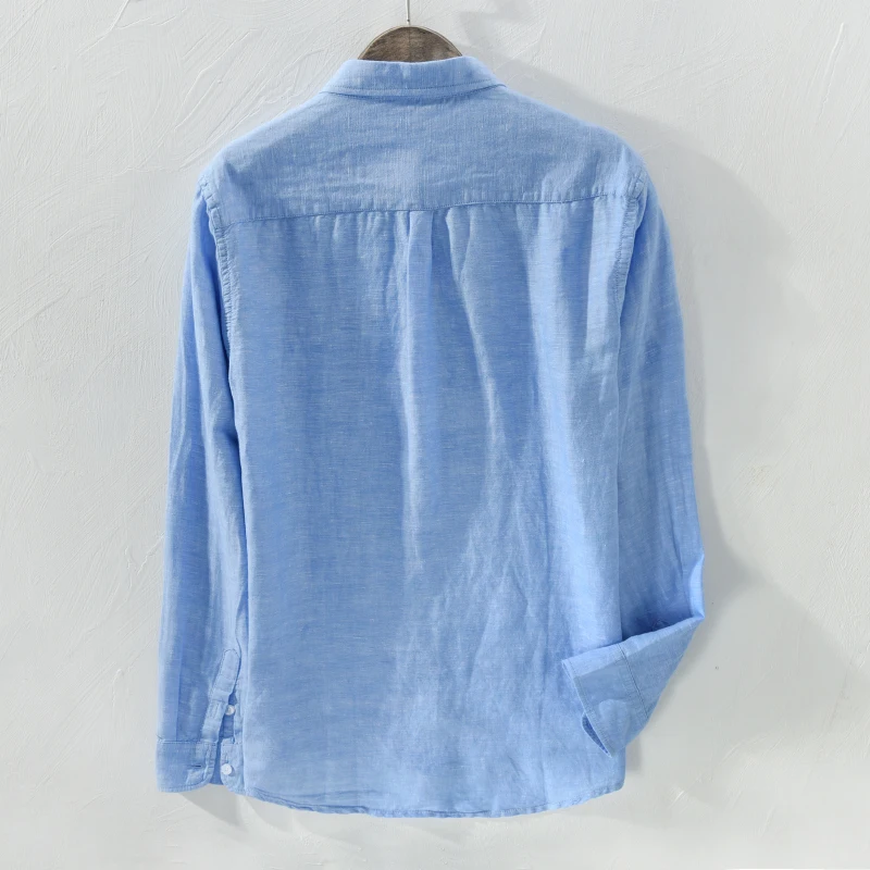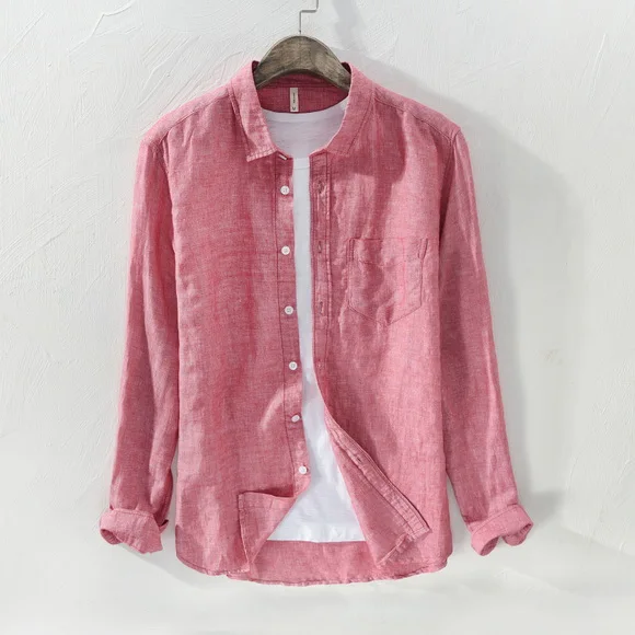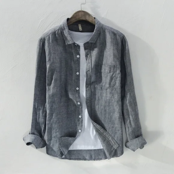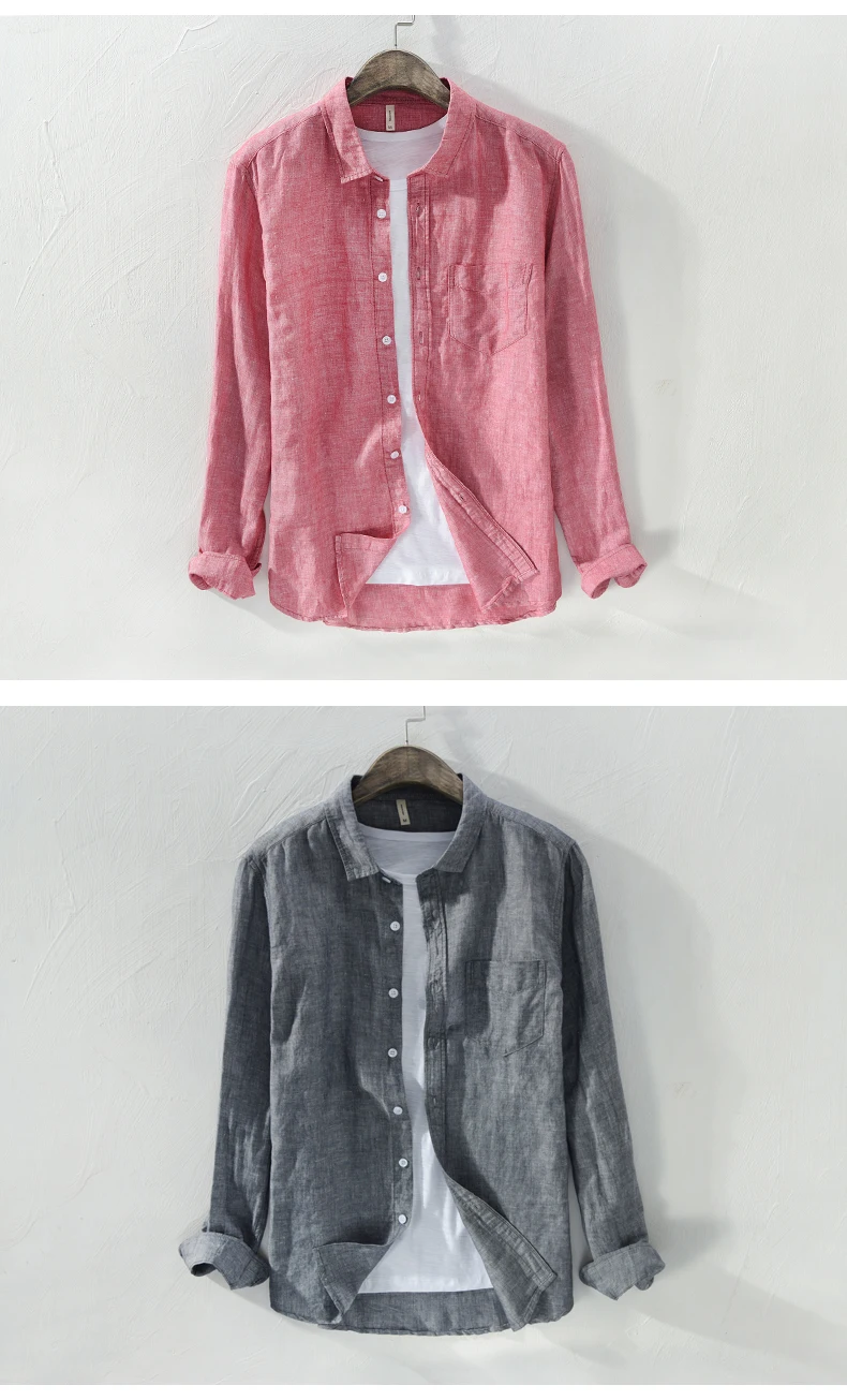 This men’s casual long – sleeve shirt blends 55% linen and 45% cotton for softness and breathability. It has a turn – down collar, single – breasted closure, and regular long sleeves, ideal for daily use in any season. Pick from light blue, gray, white, or carmine red to suit your look.