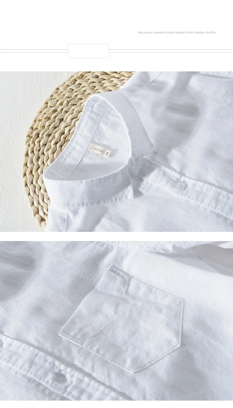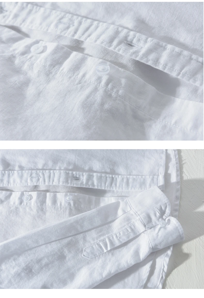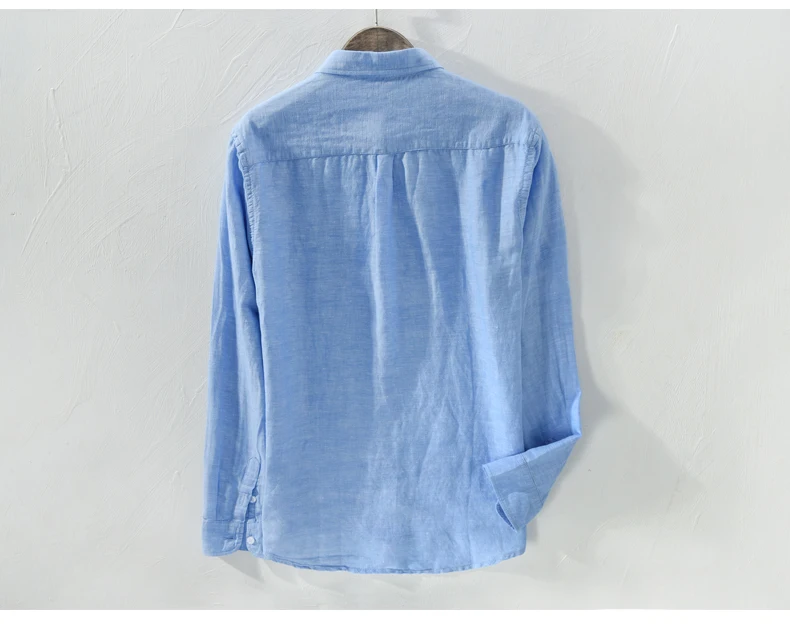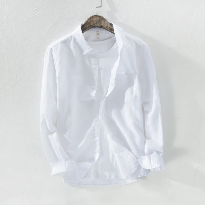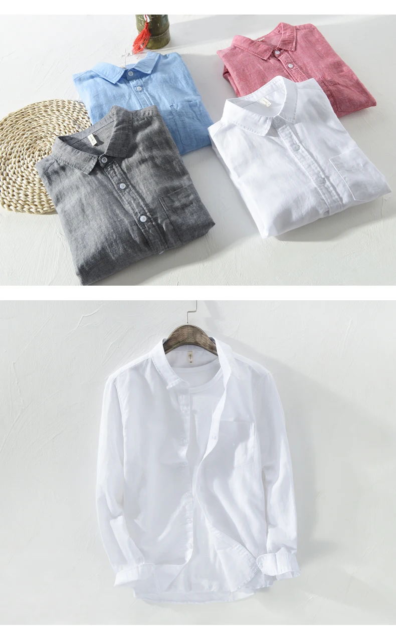 Mens Casual Long Sleeve Linen Cotton Solid Shirt Turn Down Collar