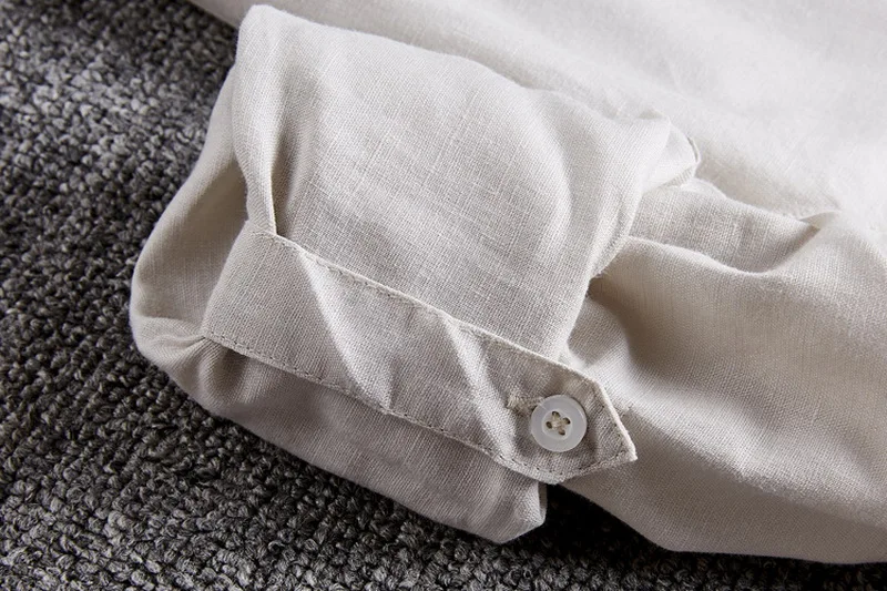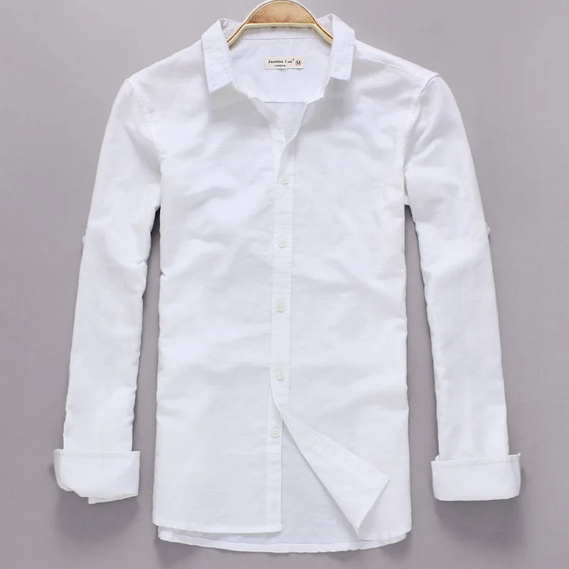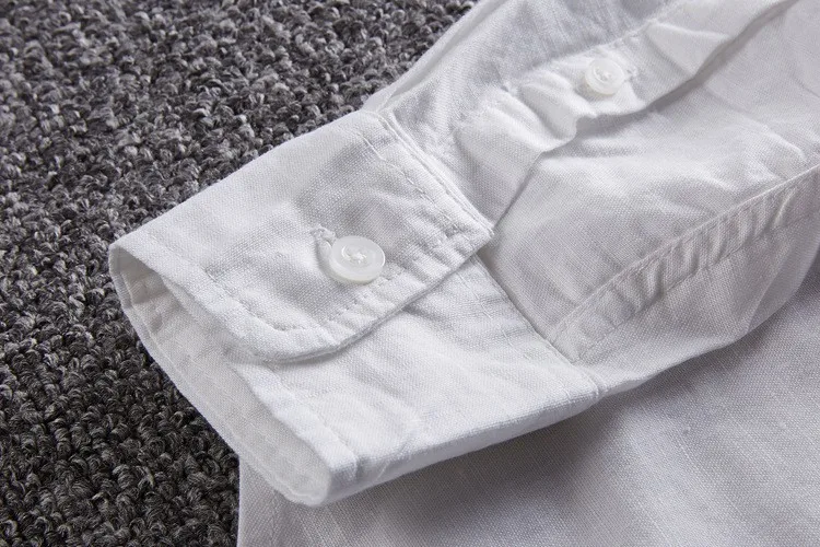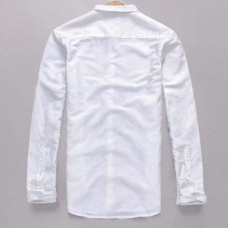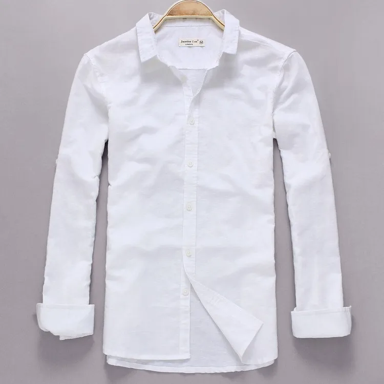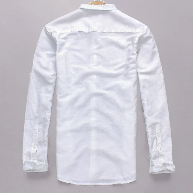 Mens Casual White Linen Cotton Long Sleeve Office Shirt