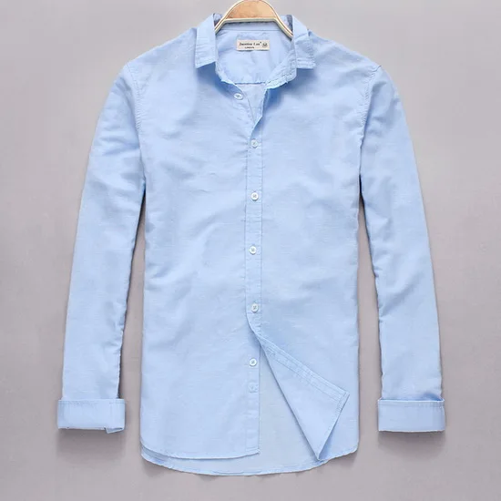 This men’s casual long – sleeve shirt blends 55% linen and 45% cotton, bringing breathability and comfort that works for all four seasons. It has a classic turn – down collar, single – breasted closure, and regular full – length sleeves with a solid color. This makes it great for office use and also suitable for casual occasions. You can pick from colors like white, black, sky blue, or khaki, and sizes from M to XXXL (Asian sizes) to fit different body shapes.