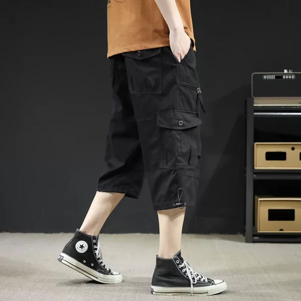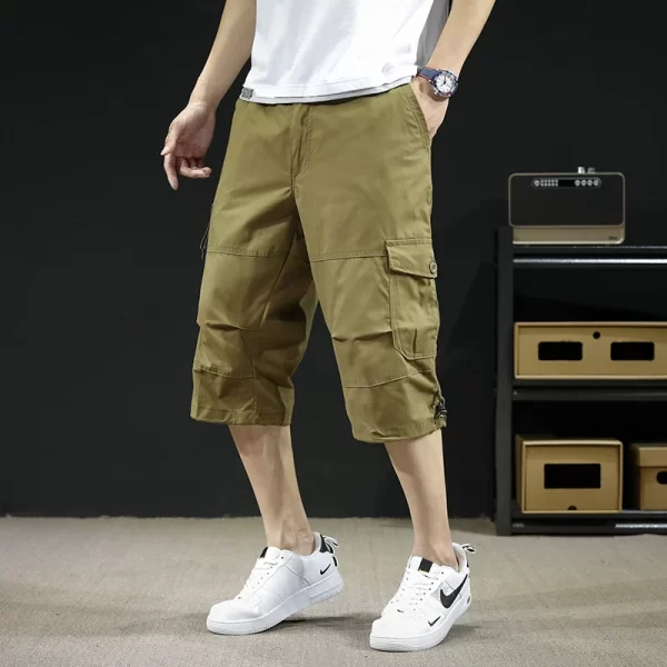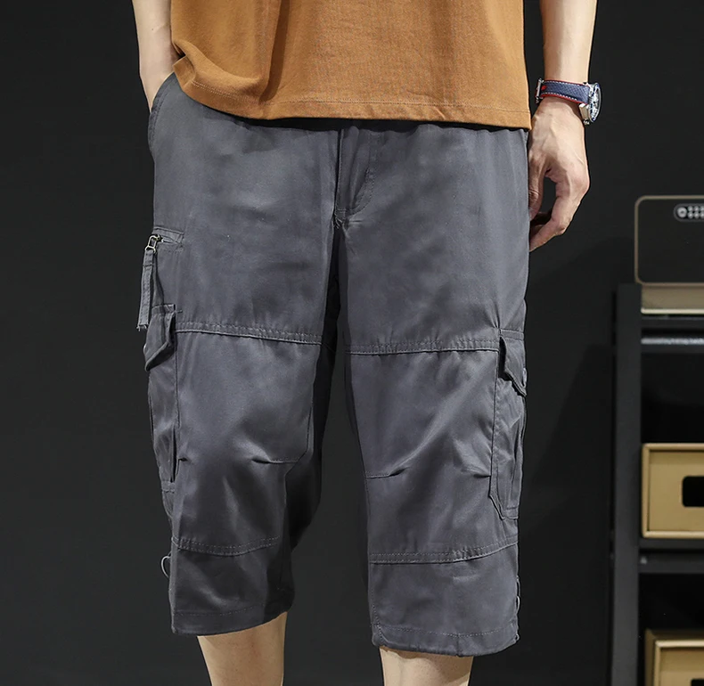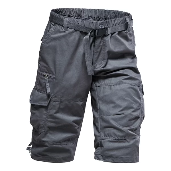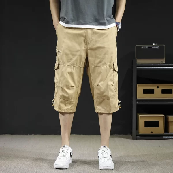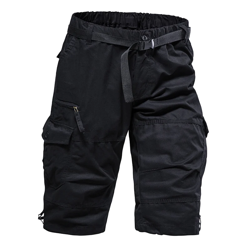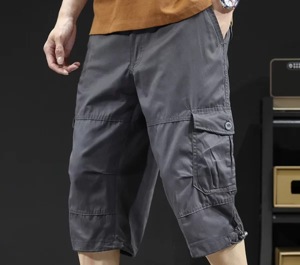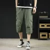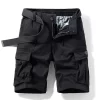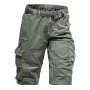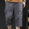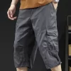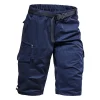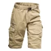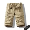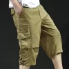 Mens Cotton Cargo Shorts Elastic Waist Multiple Pockets Loose Fit