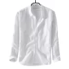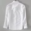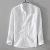 Mens Casual White Linen Cotton Long Sleeve Office Shirt