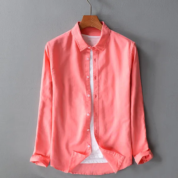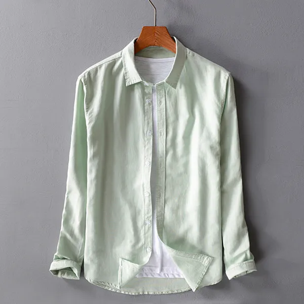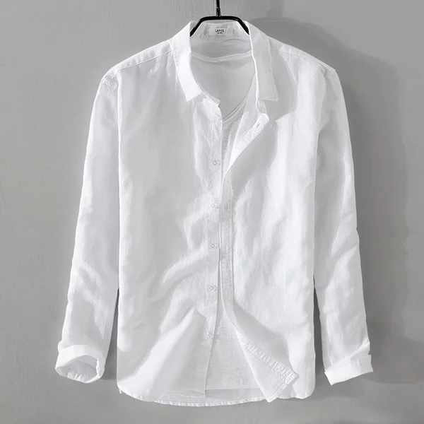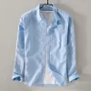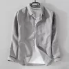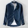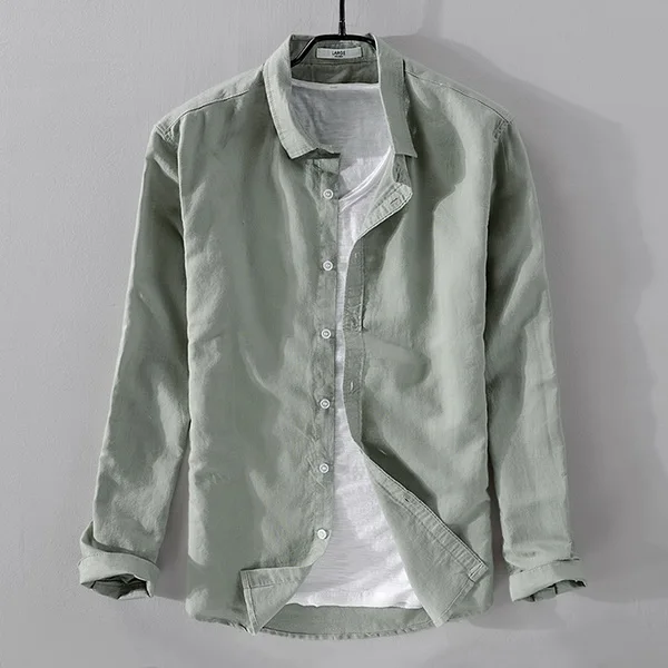 Linen Long Sleeve Vintage Casual Shirt for Men Office Wear