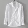 Mens 100% Linen Casual Shirt Four Seasons Square Collar Full Sleeve