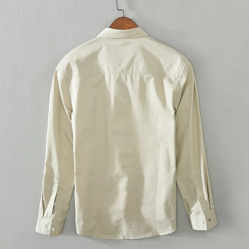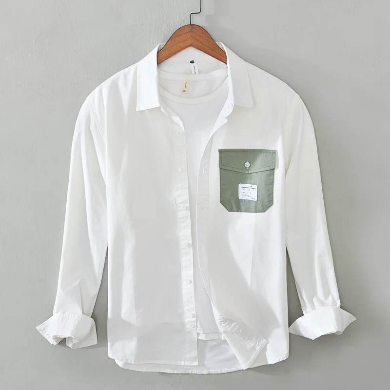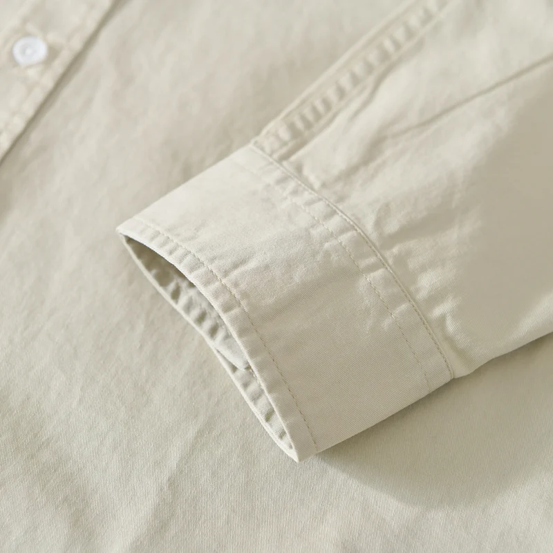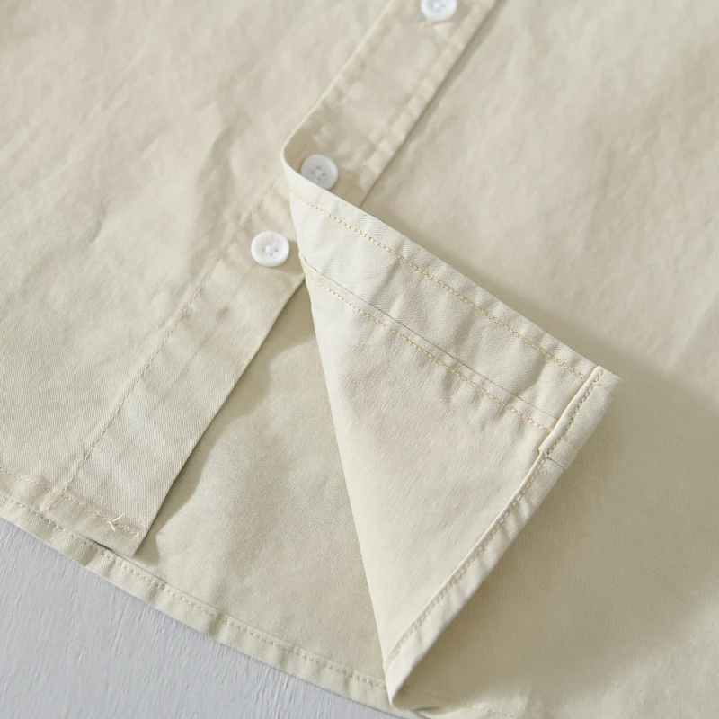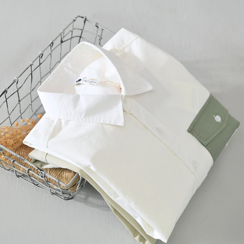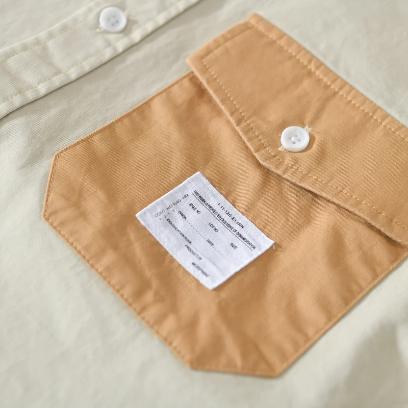 This men’s casual shirt uses 100% cotton broadcloth for all – day comfort. It has long regular sleeves, a classic turn – down collar, and a single – breasted closure. The solid color (white or khaki) with a contrast pocket gives it a trendy look, and it’s perfect for daily wear in any season. You can pair it with jeans or chinos for a relaxed and modern style.