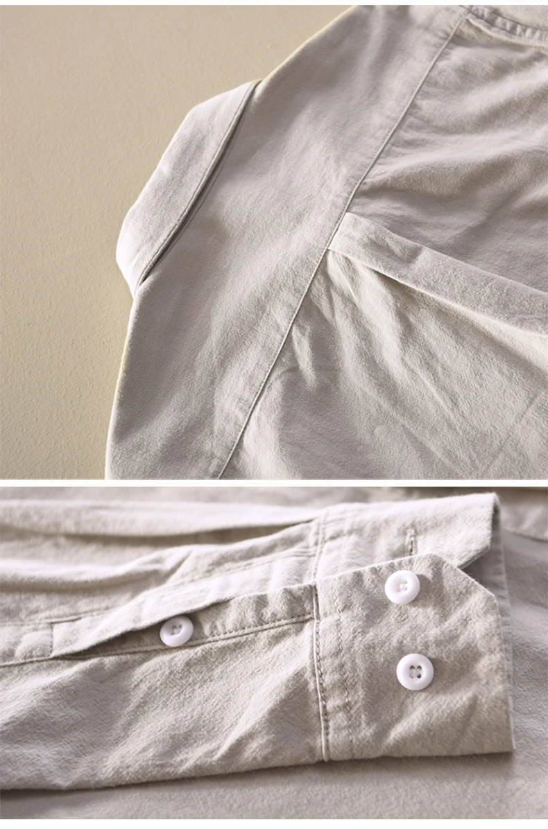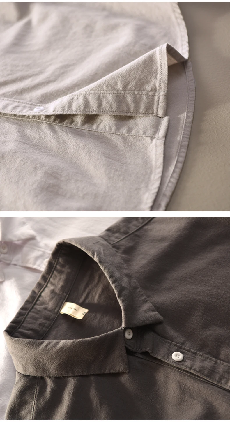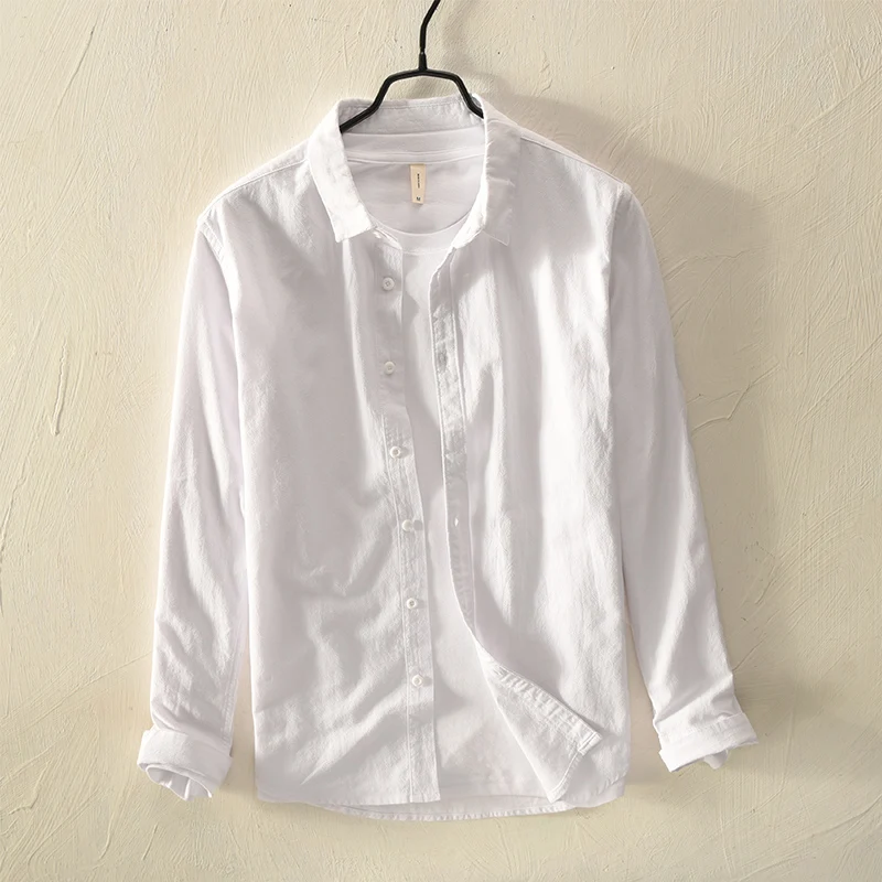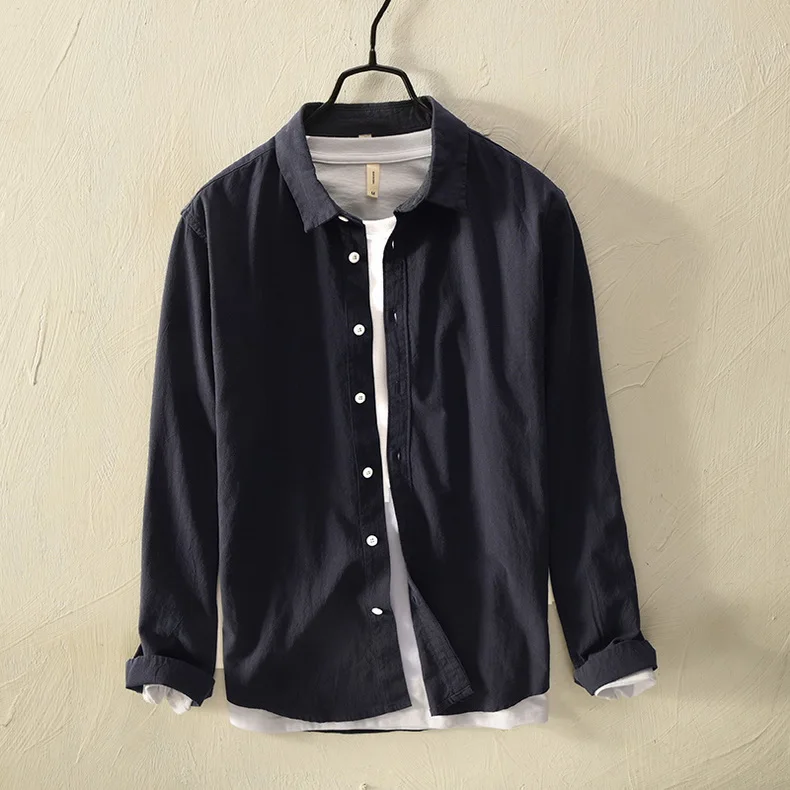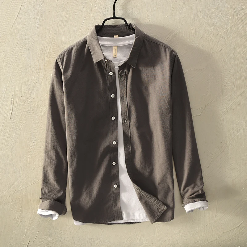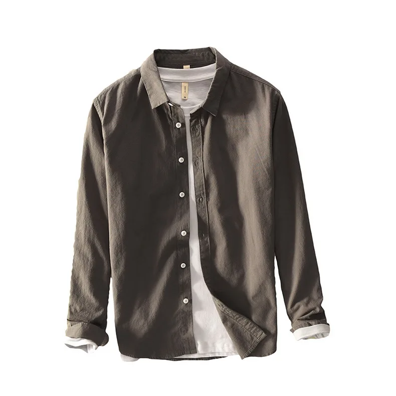 Mens Cotton Long Sleeve Casual Turn – Down Collar Solid Shirt All Seasons