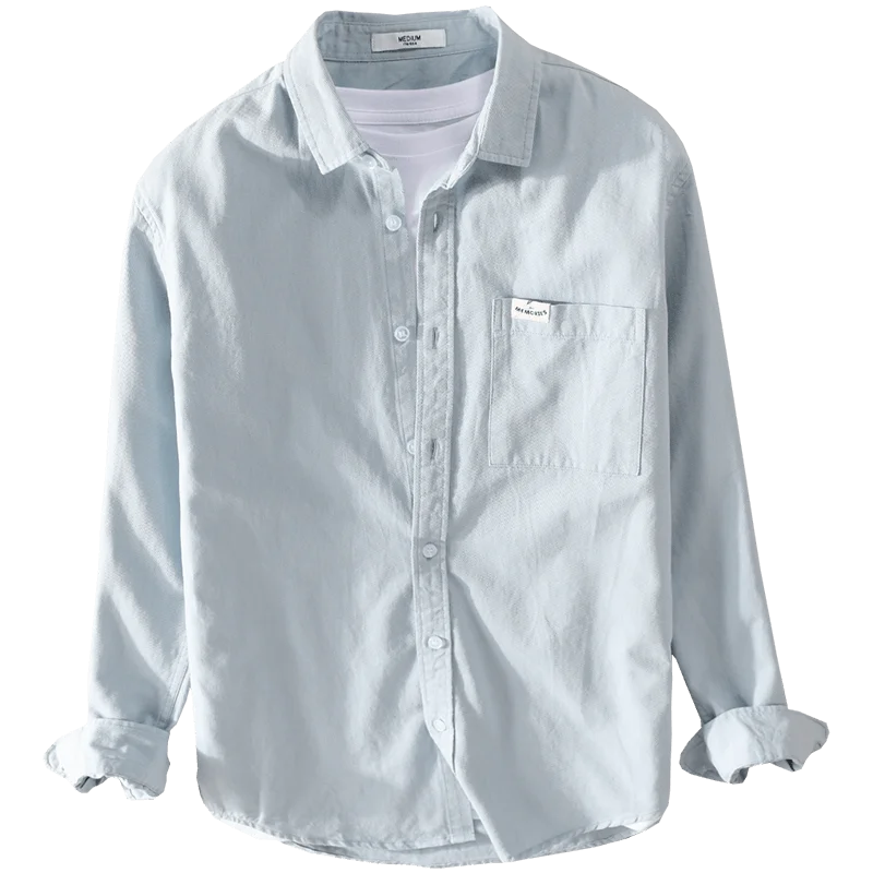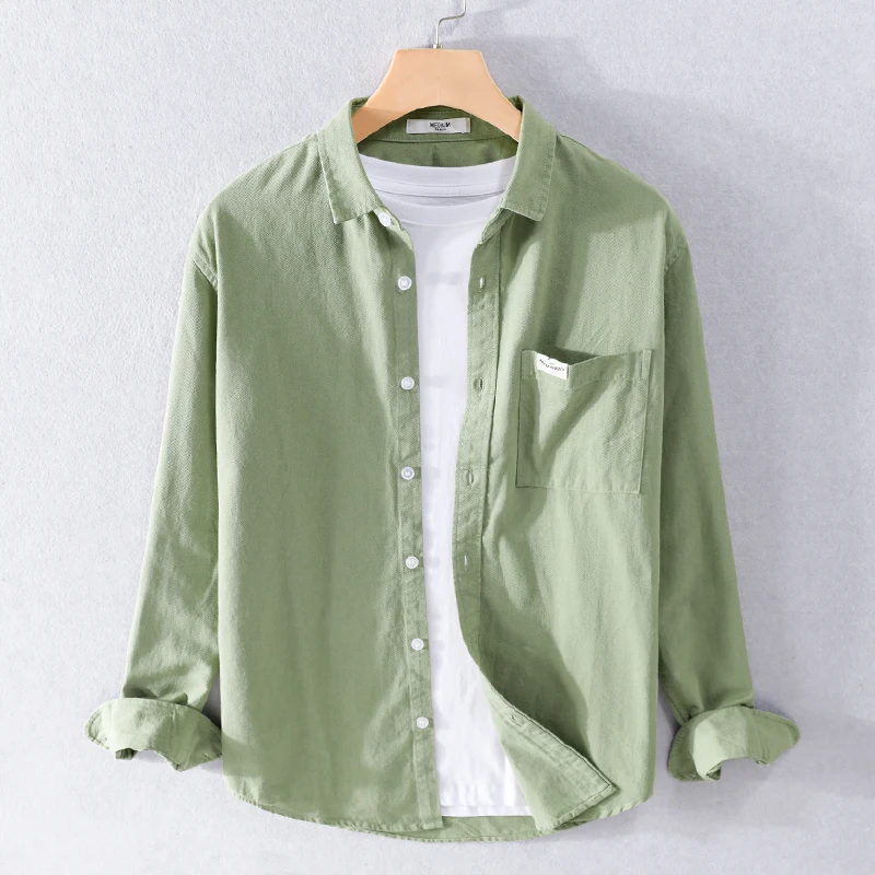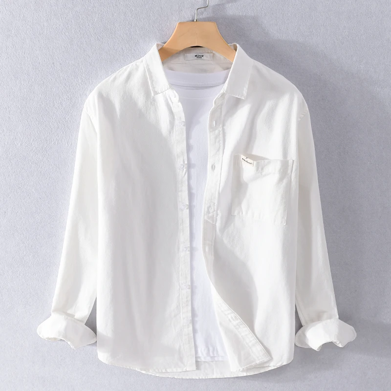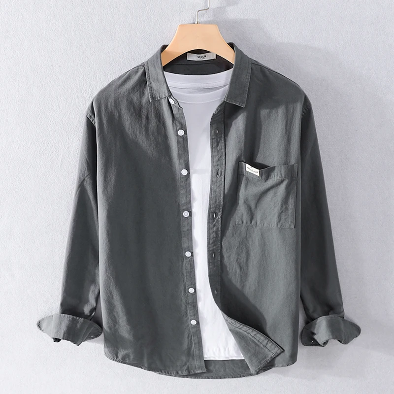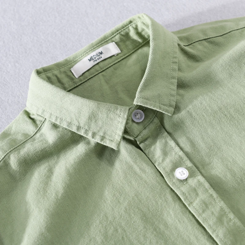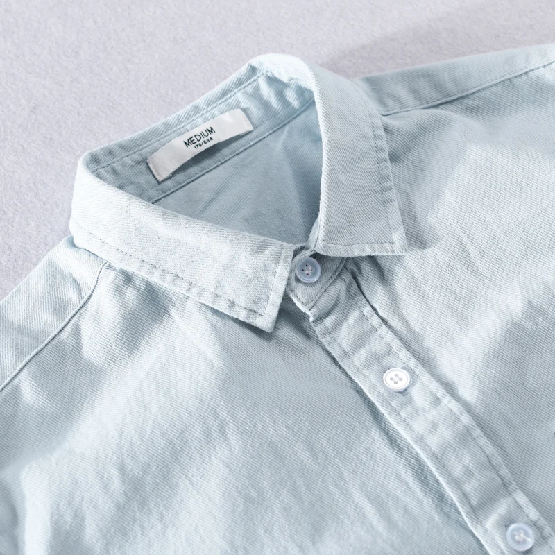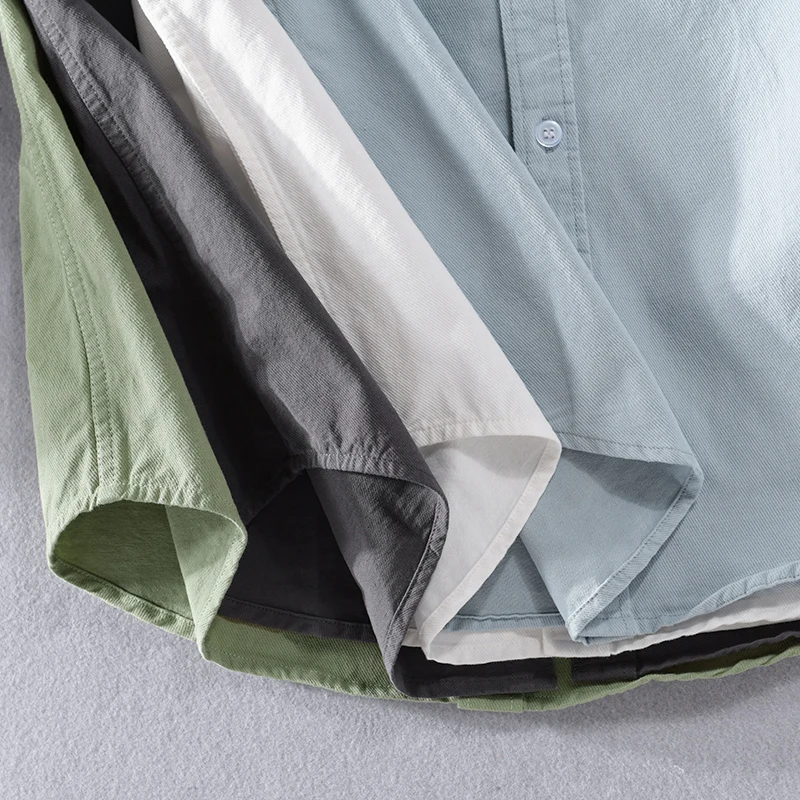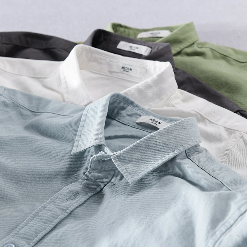 Mens Cotton Long Sleeve Solid Square Collar Casual Shirt Trendy Comfortable