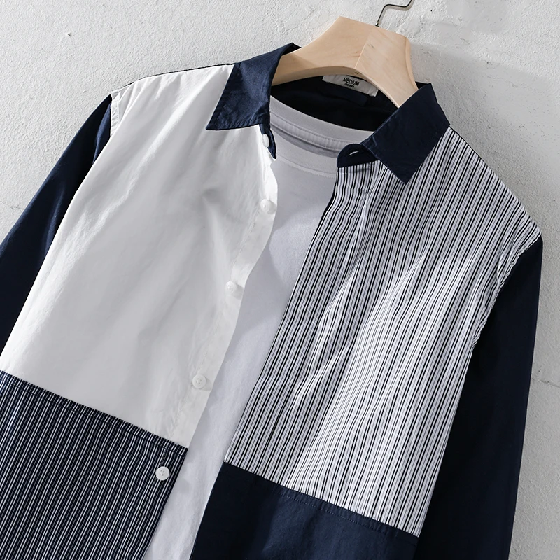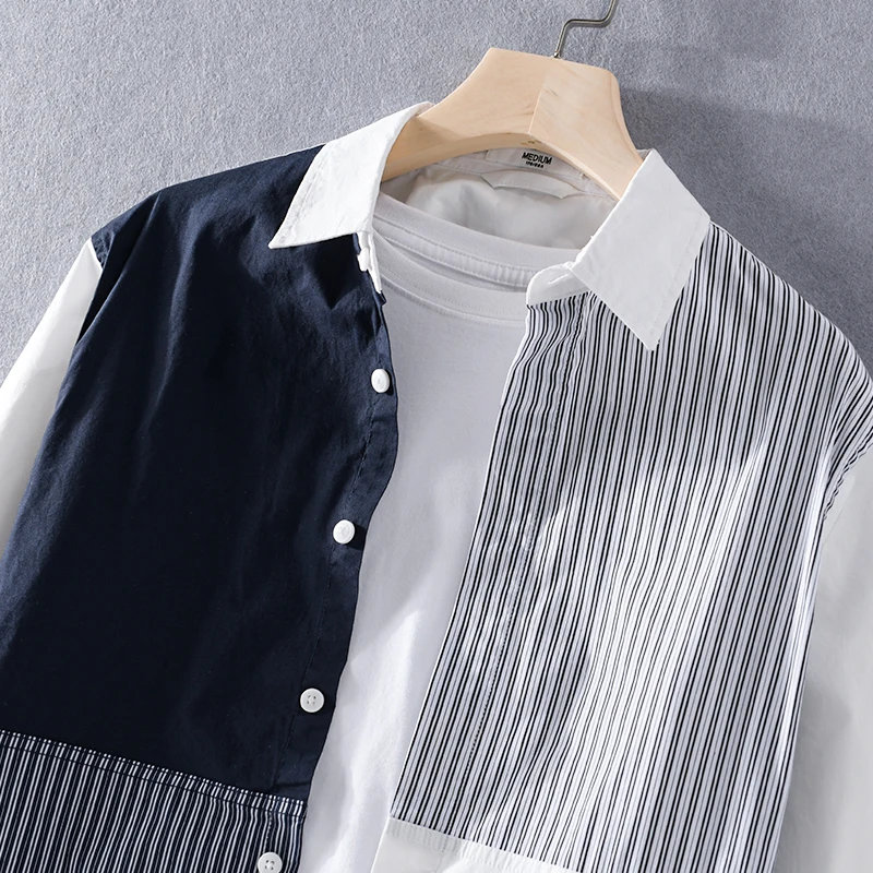 Mens Casual Patchwork Long Sleeve Cotton Comfortable Four Seasons ShirtMens Casual Patchwork Long Sleeve Cotton Comfortable Four Seasons Shirt
