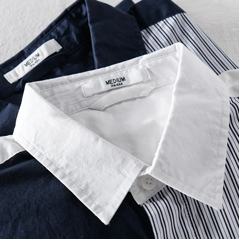 This men’s casual long – sleeve shirt is made of 100% cotton, which is comfortable and breathable, suitable for wearing in all four seasons. The patchwork pattern gives it a trendy look, and the turn – down collar along with the single – breasted closure brings a classic and versatile style. With regular long sleeves and a casual design, it is perfect for office use and can also be easily matched with casual outfits. It is available in blue – collar and white – collar color options, and sizes from M to XXXL to fit different body shapes.