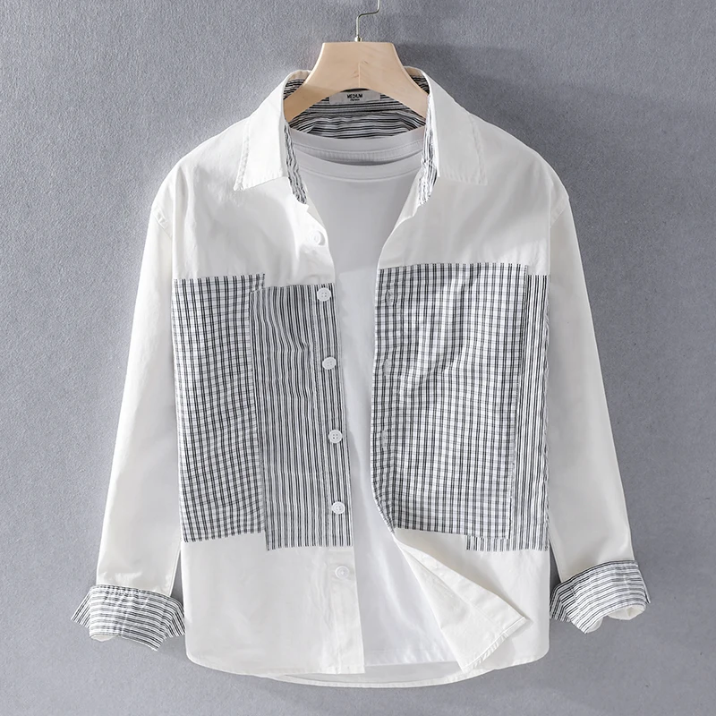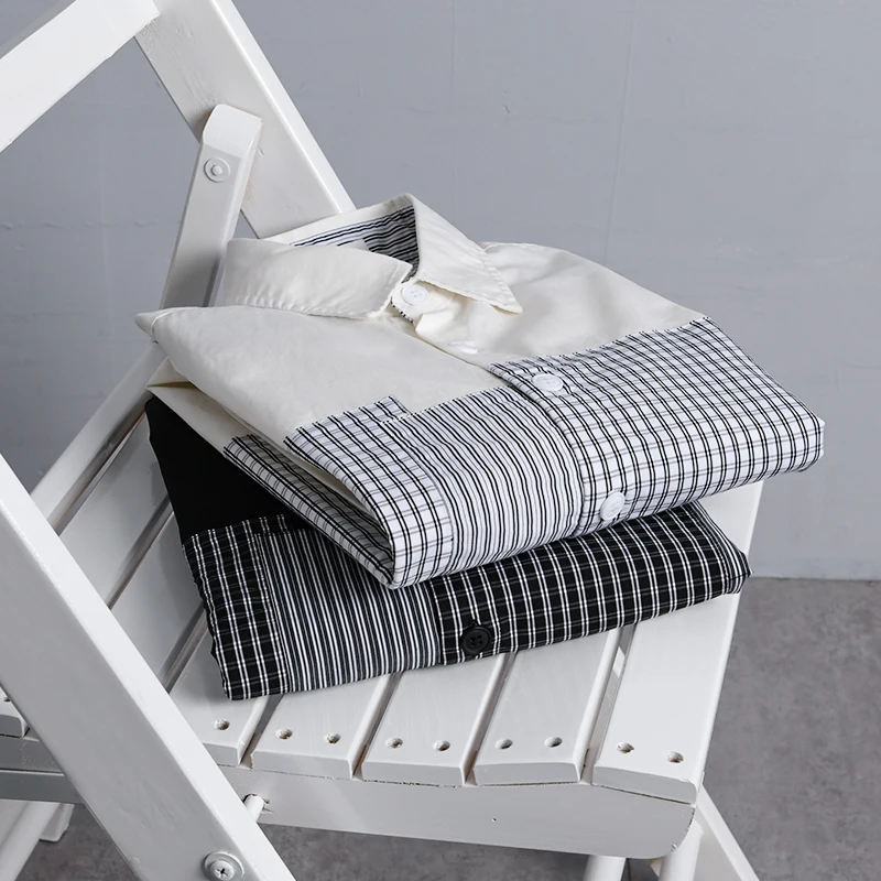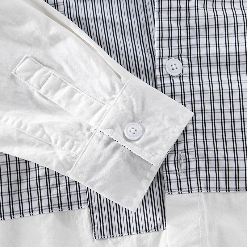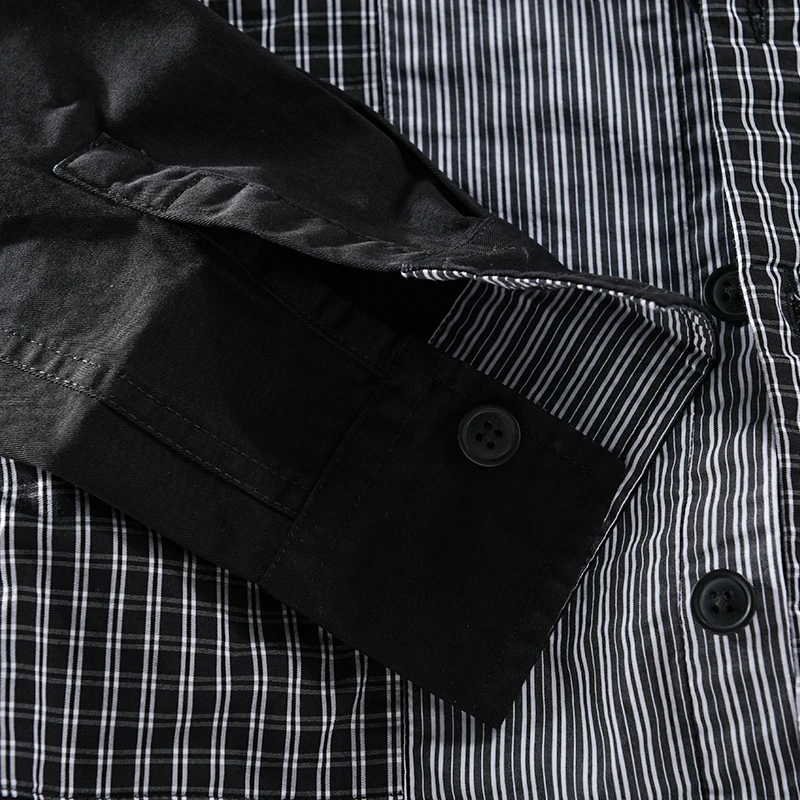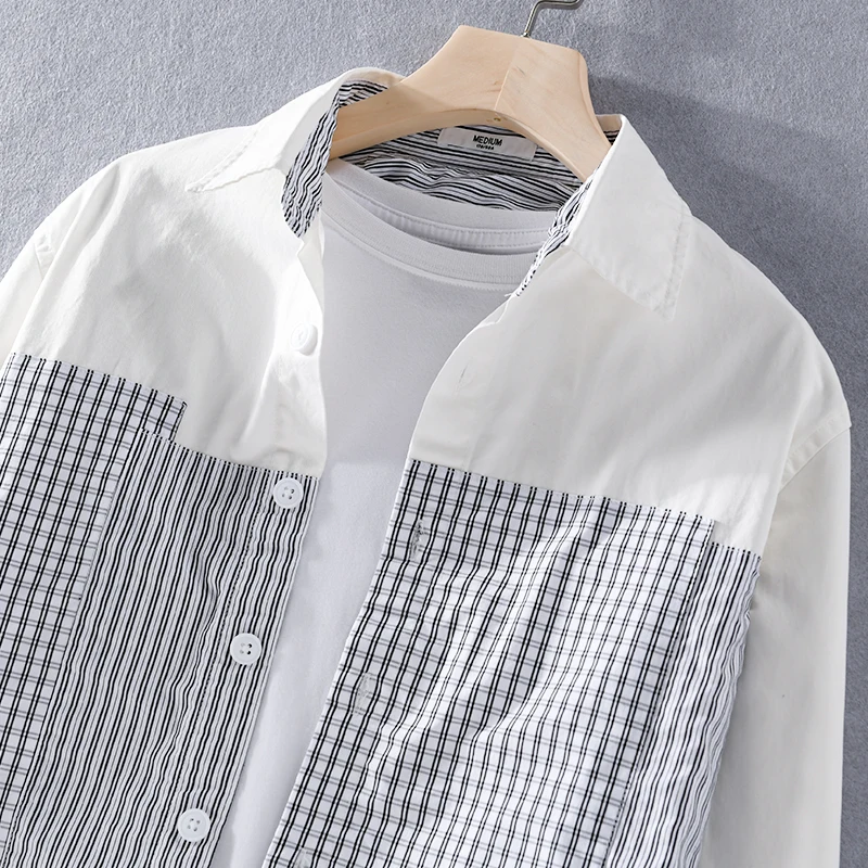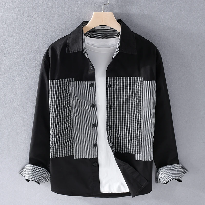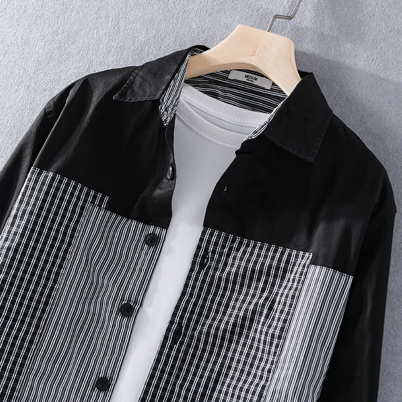 This men’s casual shirt brings a fresh twist to classic style with unique plaid and solid stitching. Made of 100% cotton broadcloth, it feels soft and breathable for all-day comfort. The turn-down collar and single – breasted closure add a polished touch, while full regular sleeves and a relaxed fit work for office days or casual outings. Wear it year – round—its versatile design suits any season, and the black or white color options easily match your wardrobe.
