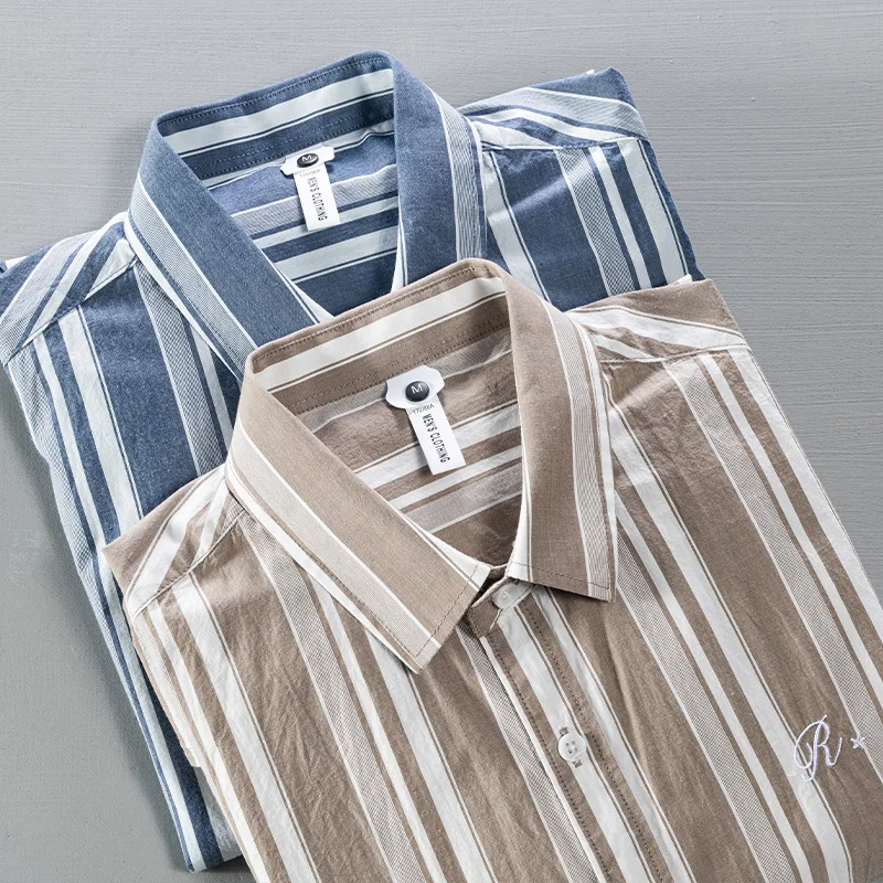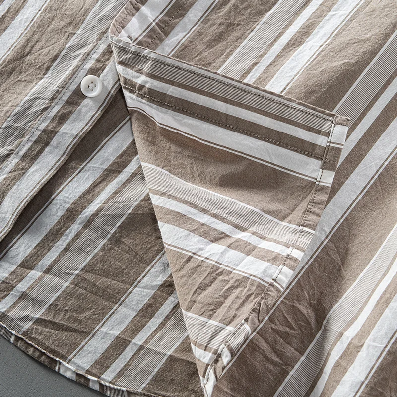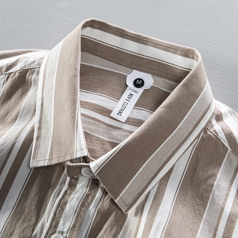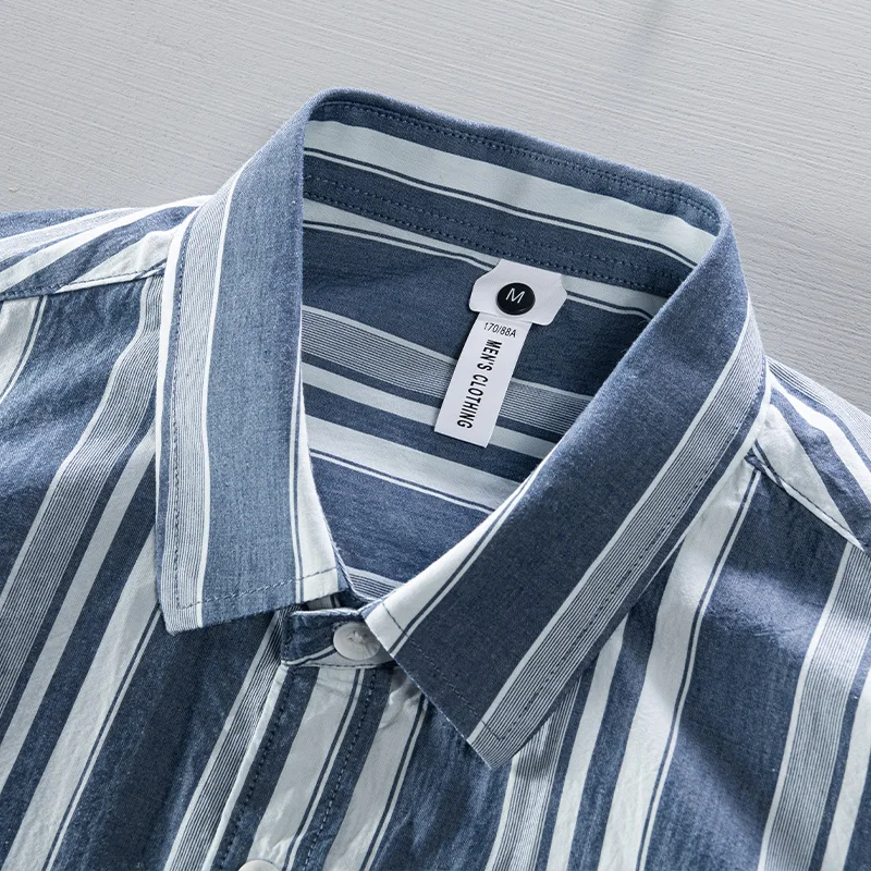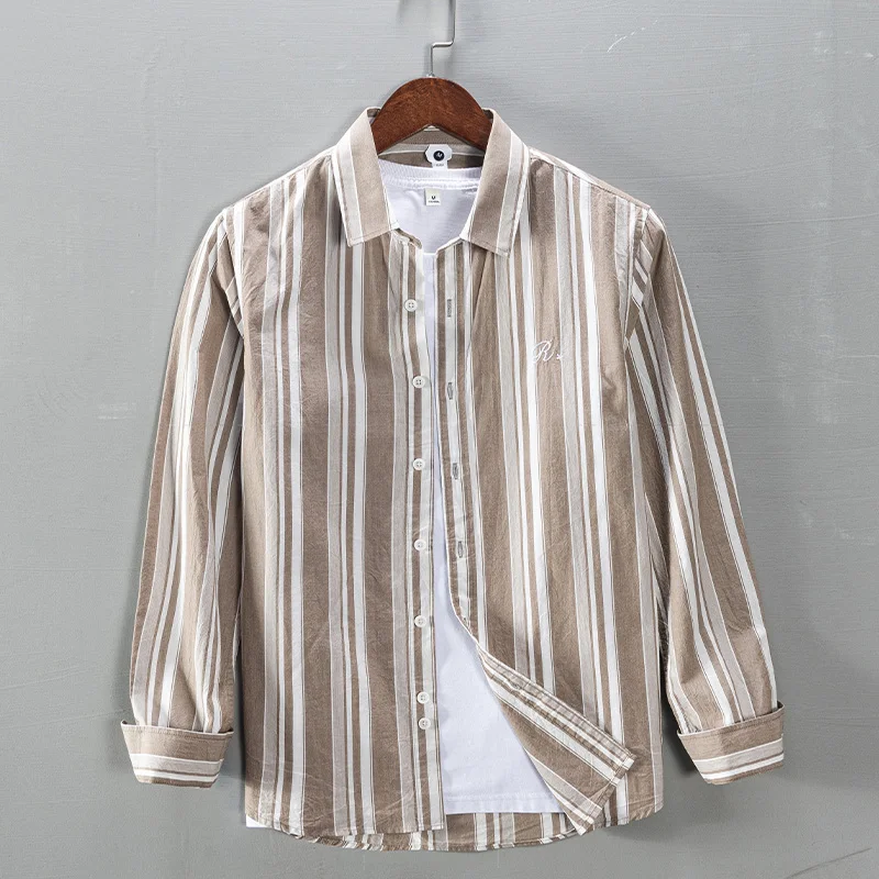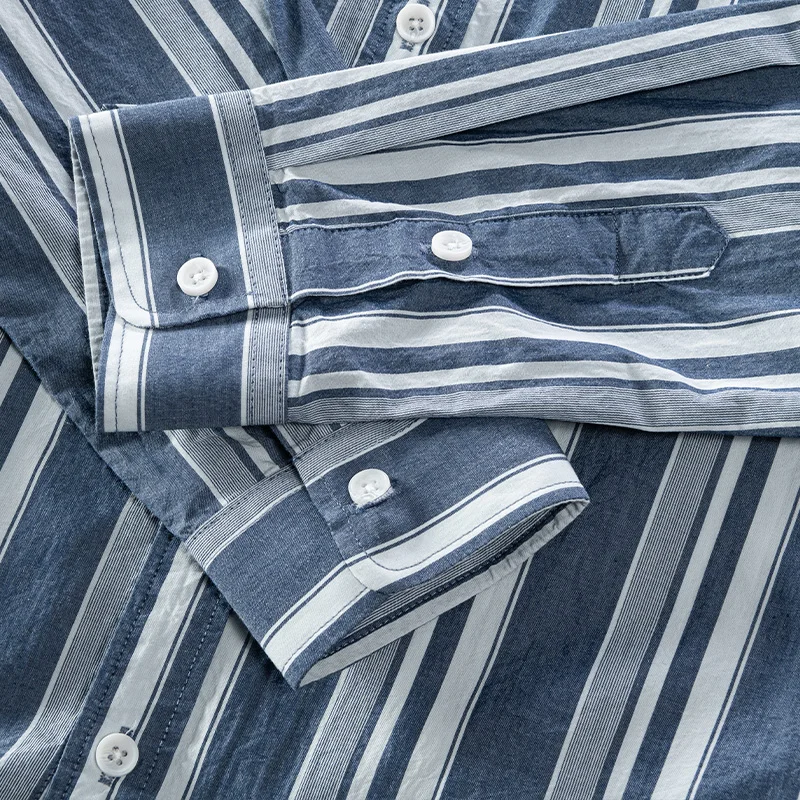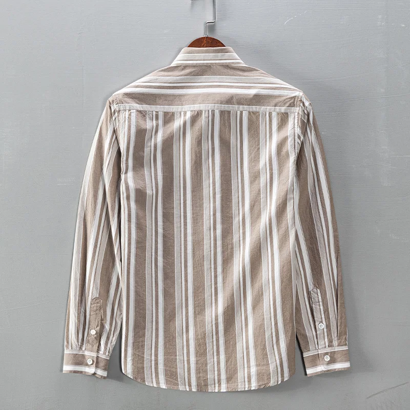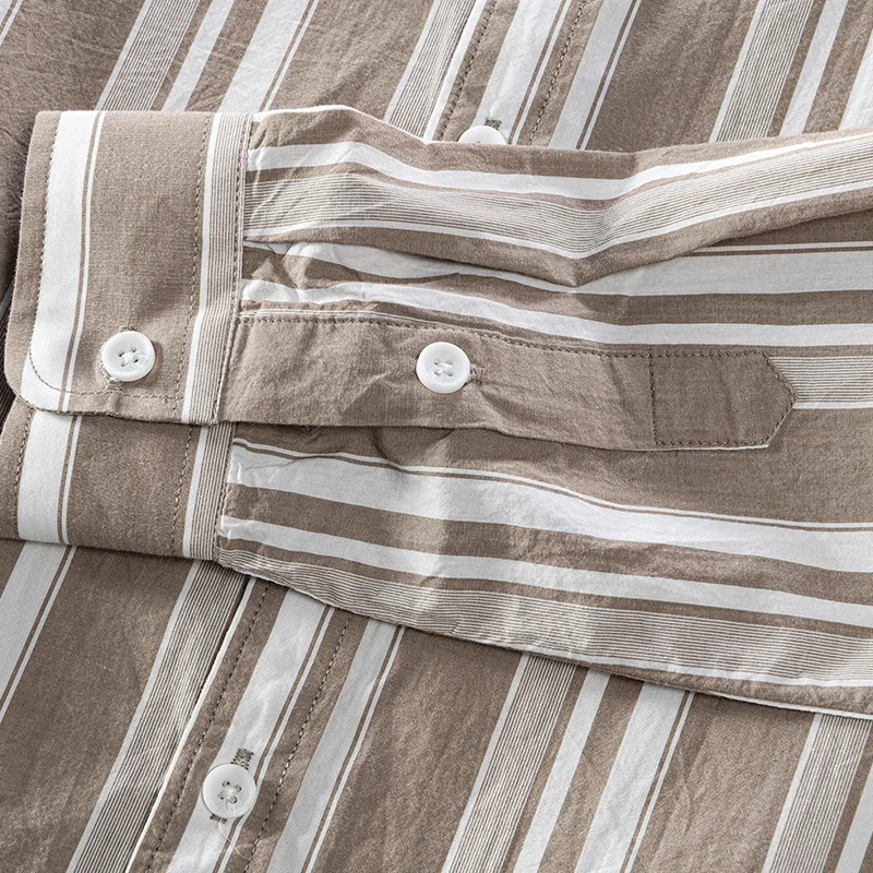 Mens Cotton Striped Long Sleeve Casual Shirt Comfortable Daily