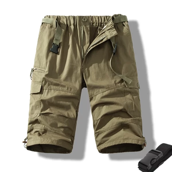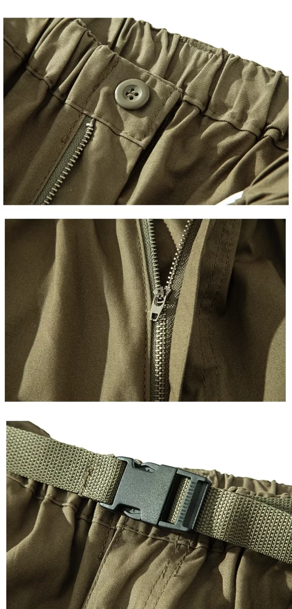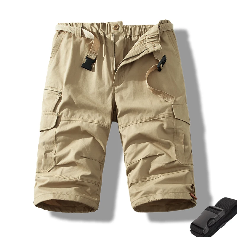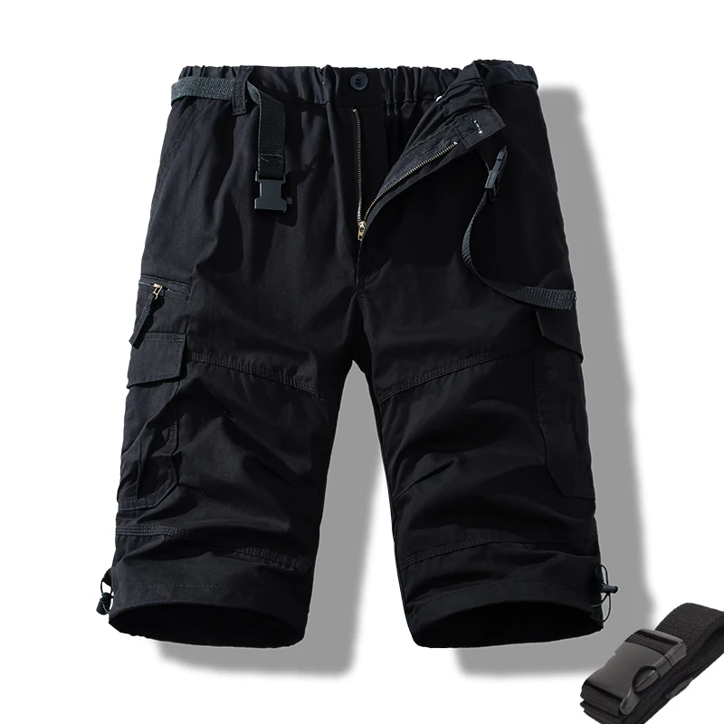 These men’s tactical cargo shorts are perfect for casual summer activities like hiking, fishing, and jogging. Made of cotton, they offer comfort and durability. With a mid waist, zipper fly closure, and multiple pockets for practicality, they come in a straight fit and knee length. The solid pattern and casual style make them versatile for various casual outings.
