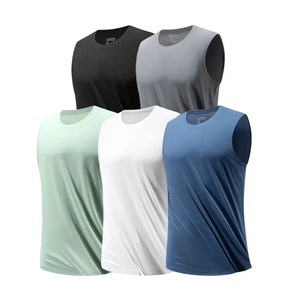 Mens Ice Silk Quick Drying Sleeveless Tank Tops Casual Solid O-Neck