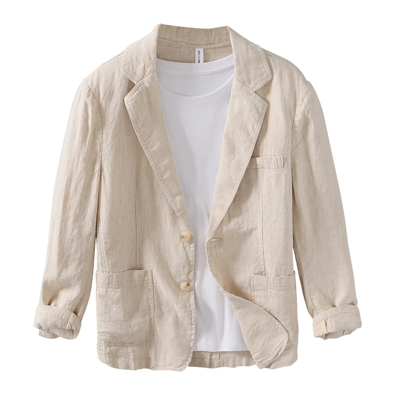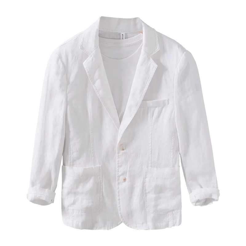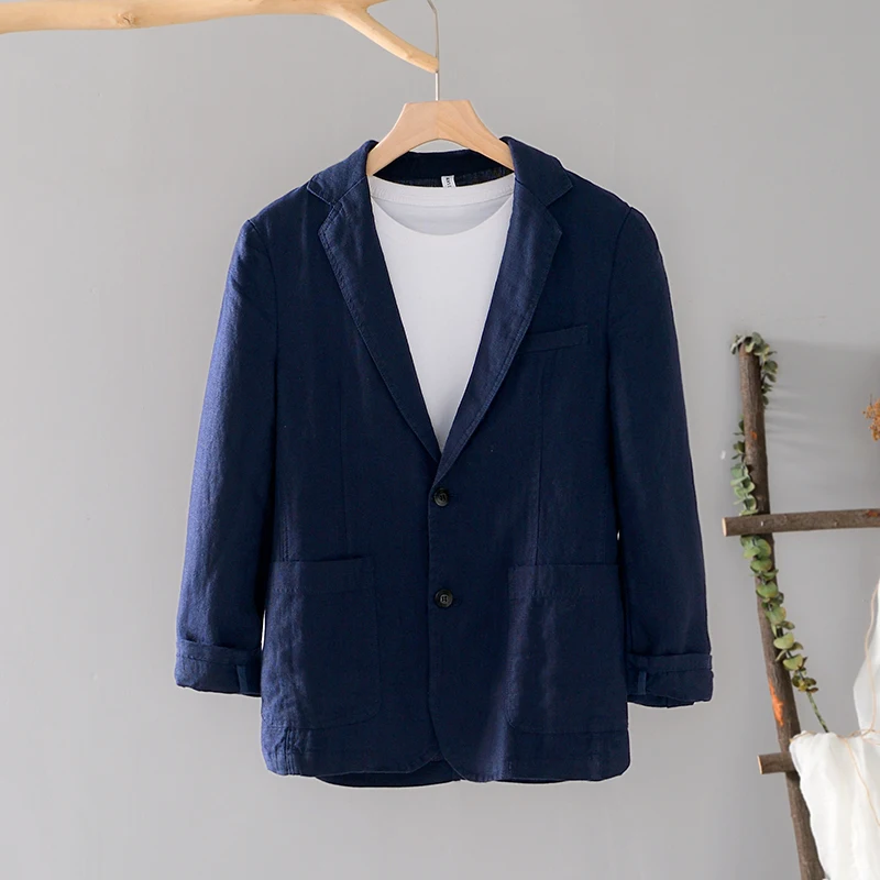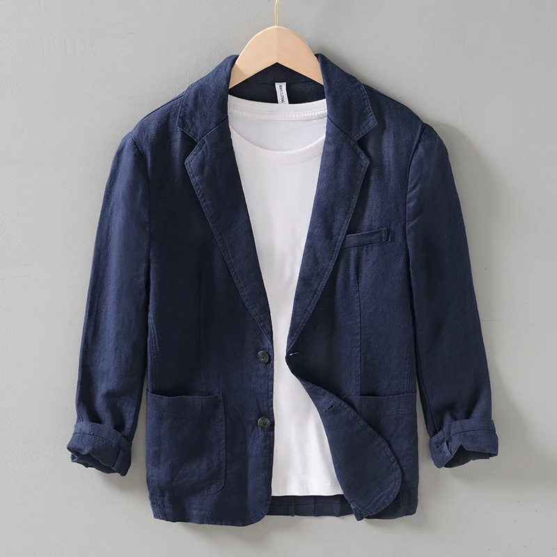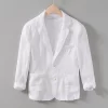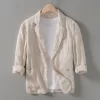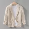Mens Linen Blazer Formal Office Suit Four Seasons Knit Single Breasted