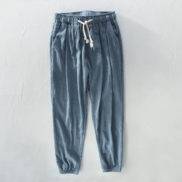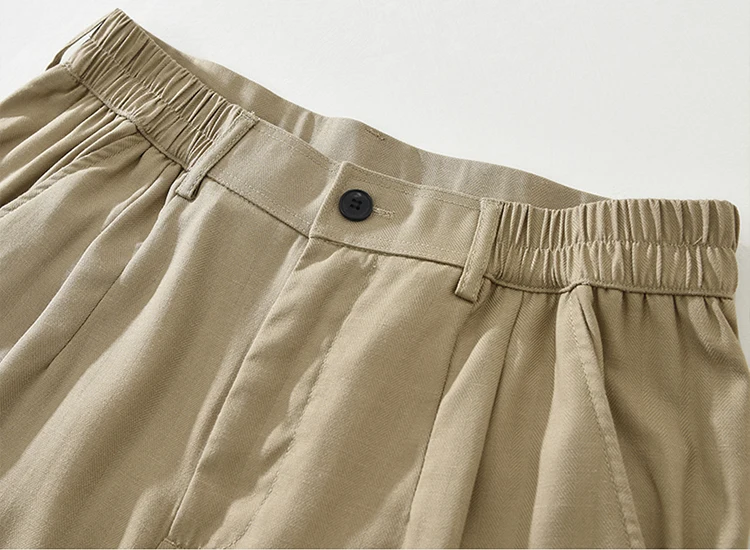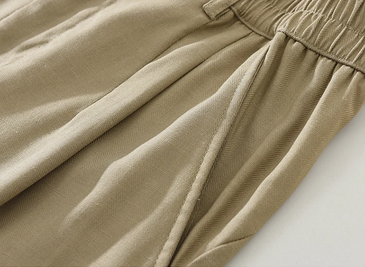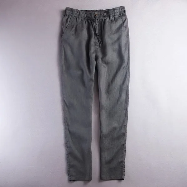 Mens Linen Blend Loose Straight Elastic Waist Casual Pants