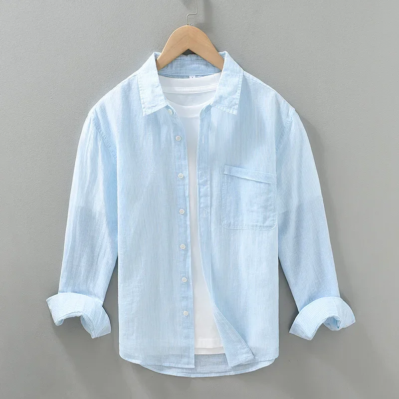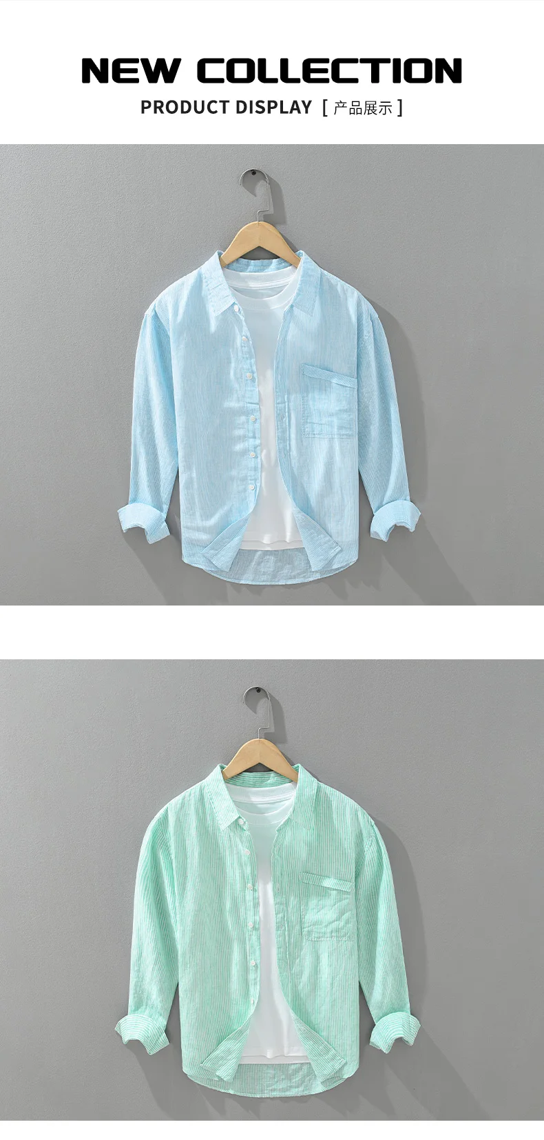 Linen Long Sleeve Shirt Men Casual Style Office Wear Four Seasons