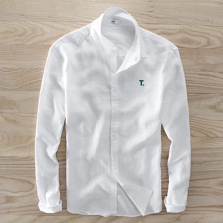 Linen Long Sleeve Vintage Casual Shirt for Men Office Wear