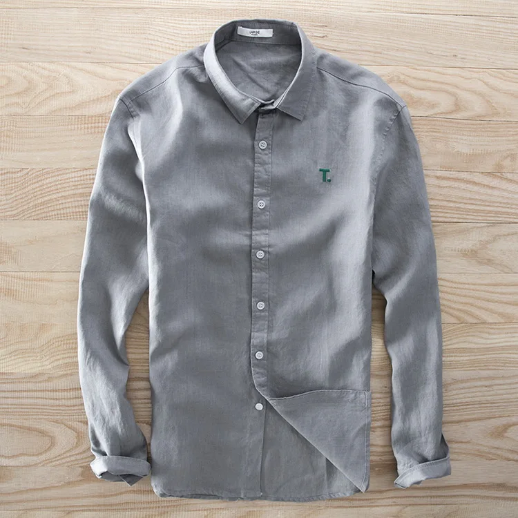 Mens 100% Linen Casual Shirt Four Seasons Square Collar Full Sleeve