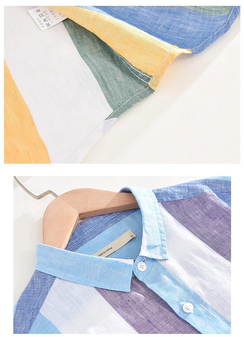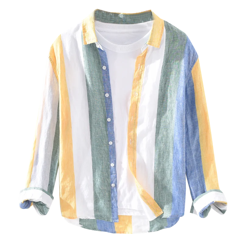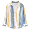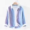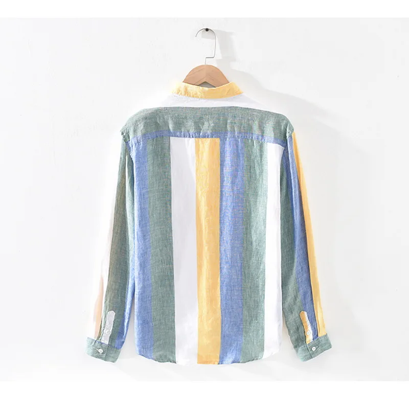 Mens Linen Long Sleeve Striped Casual Shirt Comfortable Turn Down Collar