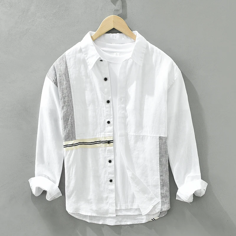 • Mens Linen Loose Patchwork Long Sleeve Casual Shirt Spring Autumn