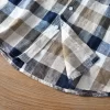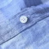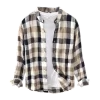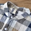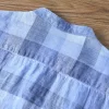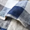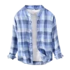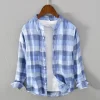 Mens Linen Plaid Stand Collar Long Sleeve Casual Shirt
