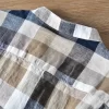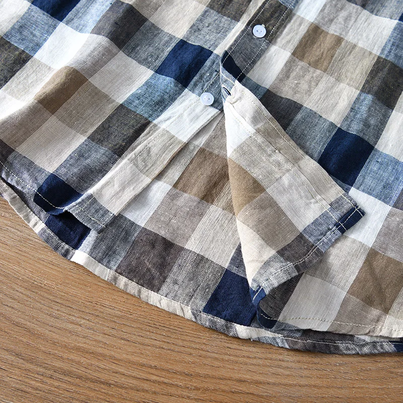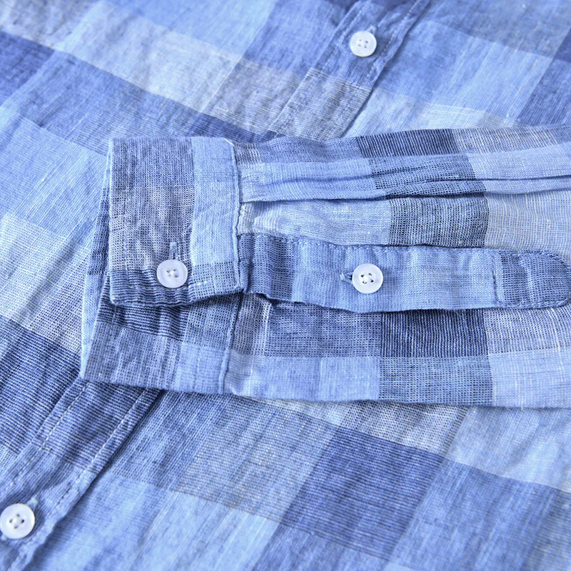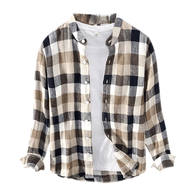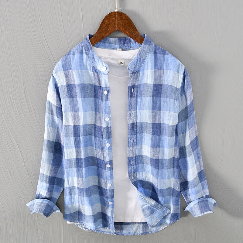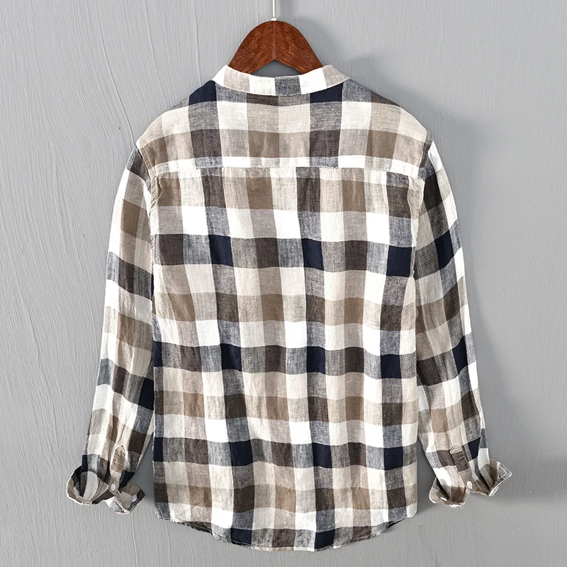 Stay stylish and comfortable with this long-sleeved casual shirt. Made from 100% linen, it offers a breathable and lightweight feel. The stand collar and plaid pattern add a touch of sophistication, while the single-breasted closure ensures easy wear. Perfect for casual outings, this shirt is suitable for all four seasons.