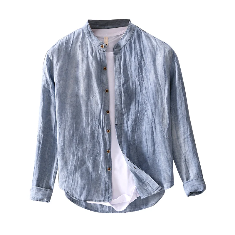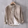 Mens Linen Stand Collar Casual Shirt Linen Four Seasons Business