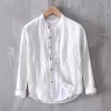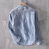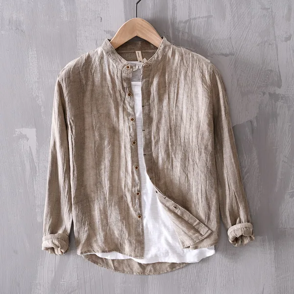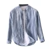 Mens Linen Stand Collar Casual Shirt Linen Four Seasons Business - Image 18