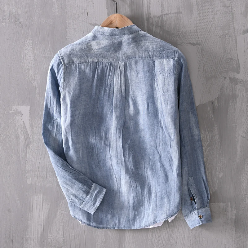 Mens Linen Stand Collar Casual Shirt Linen Four Seasons Business - Image 10