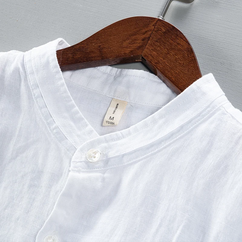 This men’s casual shirt brings Italian retro style to your daily wardrobe. Made of 100% linen, it keeps you cool and comfortable across all four seasons. The stand collar and three – quarter sleeves add a polished touch, while the single – breasted closure and solid color (choose from white or khaki) make it easy to pair with jeans, chinos, or shorts. It’s perfect for daily outings, weekend hangs, or laid – back office days, combining comfort and trend – forward design.