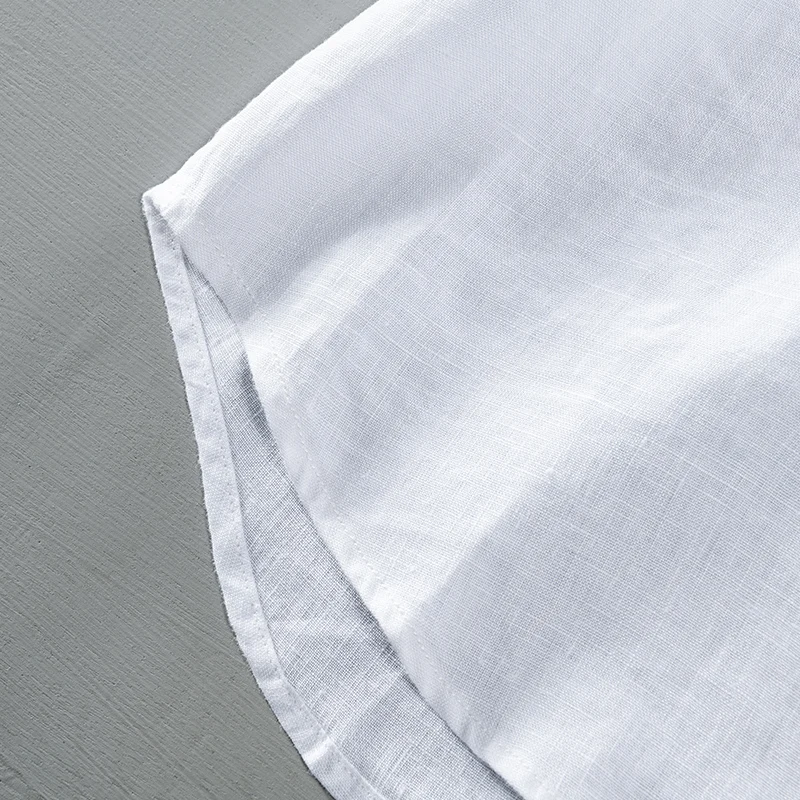 Mens Linen White Casual Stand Collar Three Quarter Sleeve Shirt