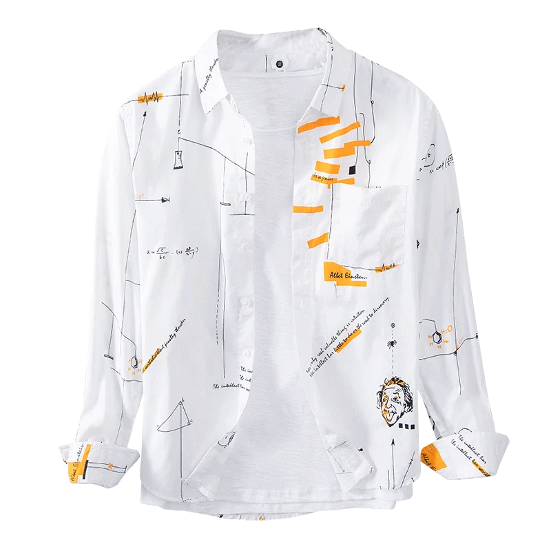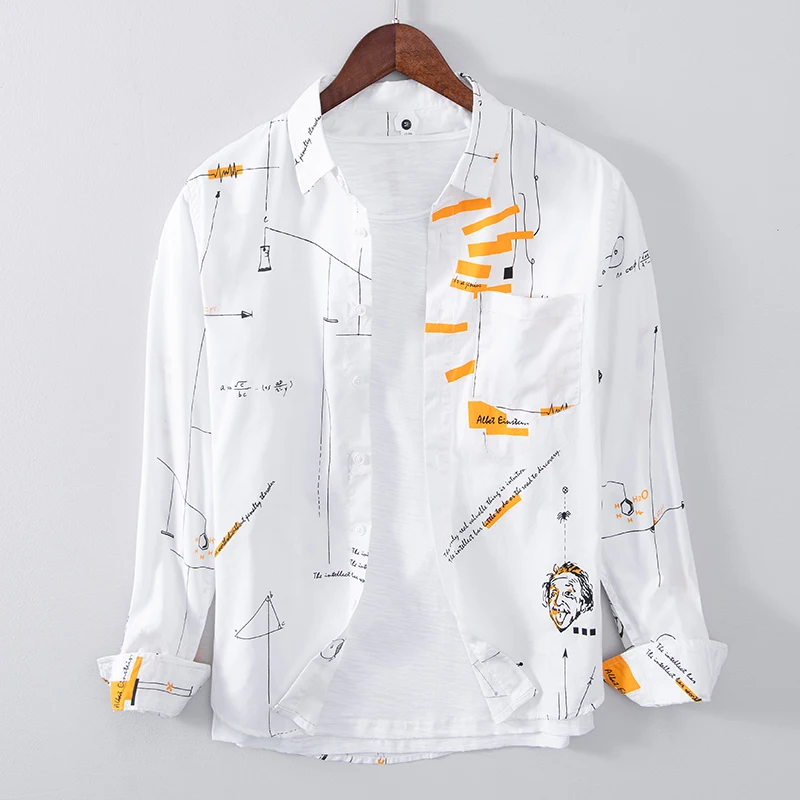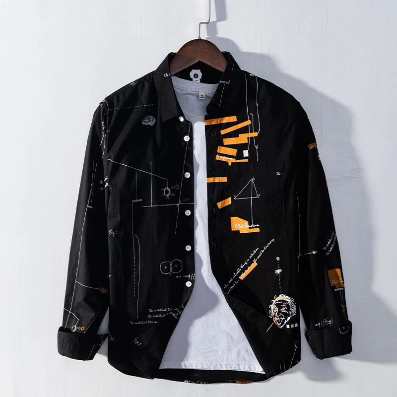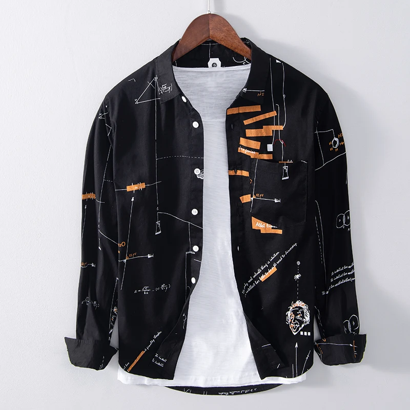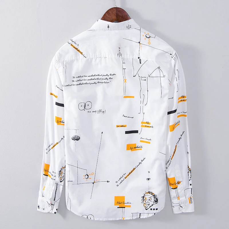 Mens Long Sleeve Cotton Printed Casual Shirt Breathable Trendy