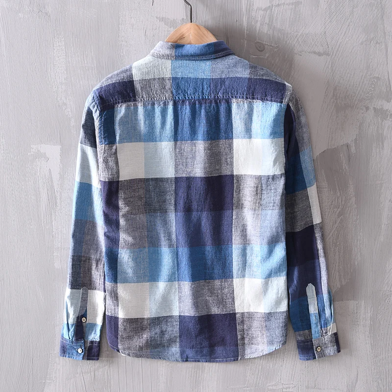 This men’s plaid long – sleeve shirt combines 55% linen and 45% cotton, ensuring breathability and comfort. It has a square collar, single – breasted closure, and regular full sleeves. The plaid pattern gives it a stylish look, and the broadcloth fabric makes it suitable for wear in all four seasons, whether for casual occasions or office work.