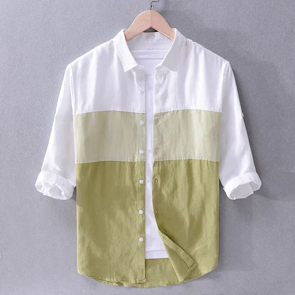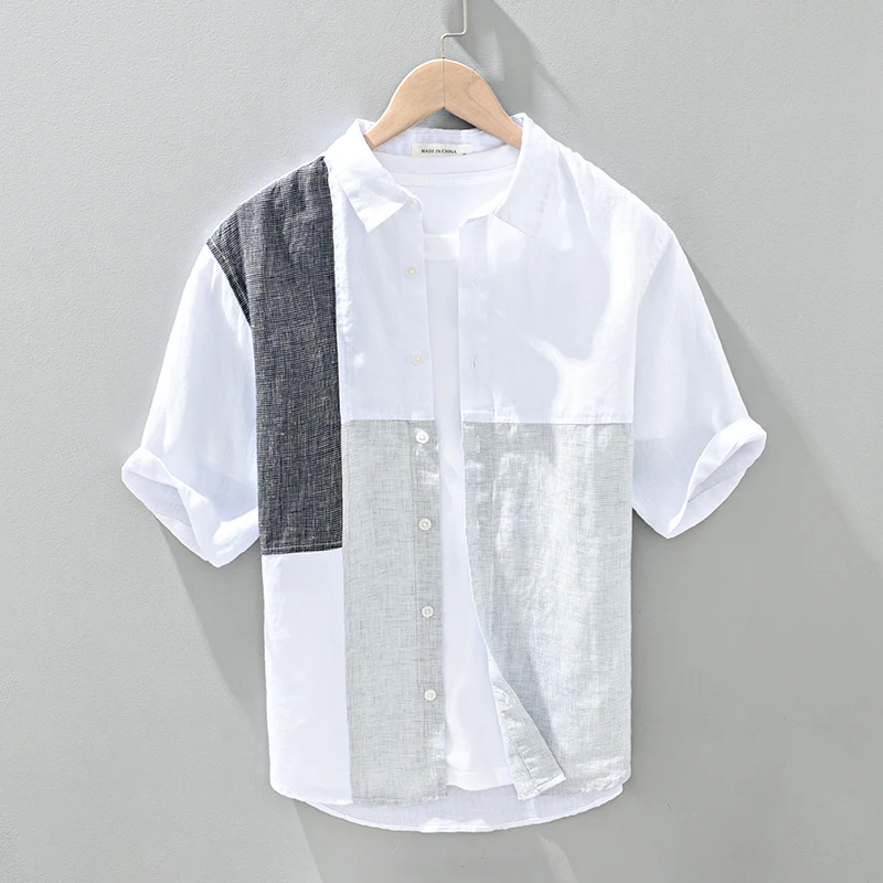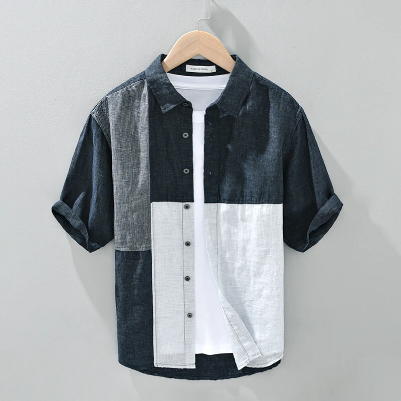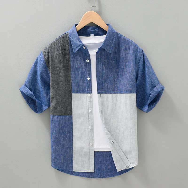 This men’s pure linen short – sleeve shirt comes with a plaid patchwork design, a classic turn – down collar, and a single – breasted closure, creating a casual and easy – going summer look. The linen fabric is breathable and lightweight, making it ideal for daily summer wear, weekend outings, or relaxed gatherings. The plaid patchwork adds a stylish touch, while the regular short sleeves and loose fit ensure all – day comfort, keeping you cool and fashionable in hot weather.