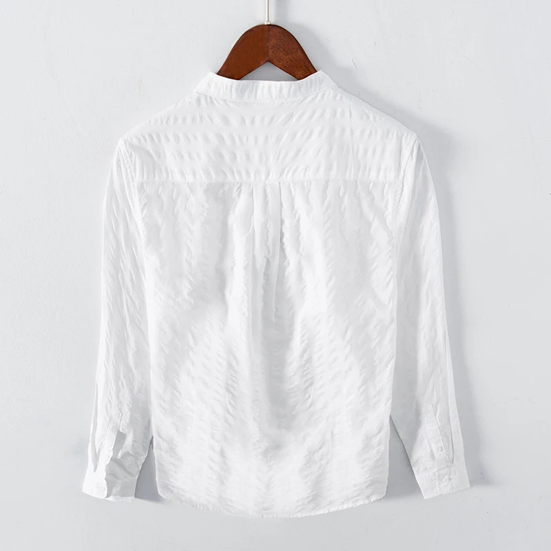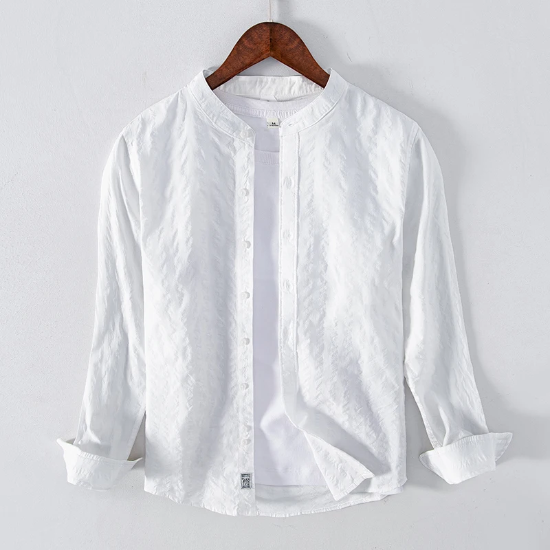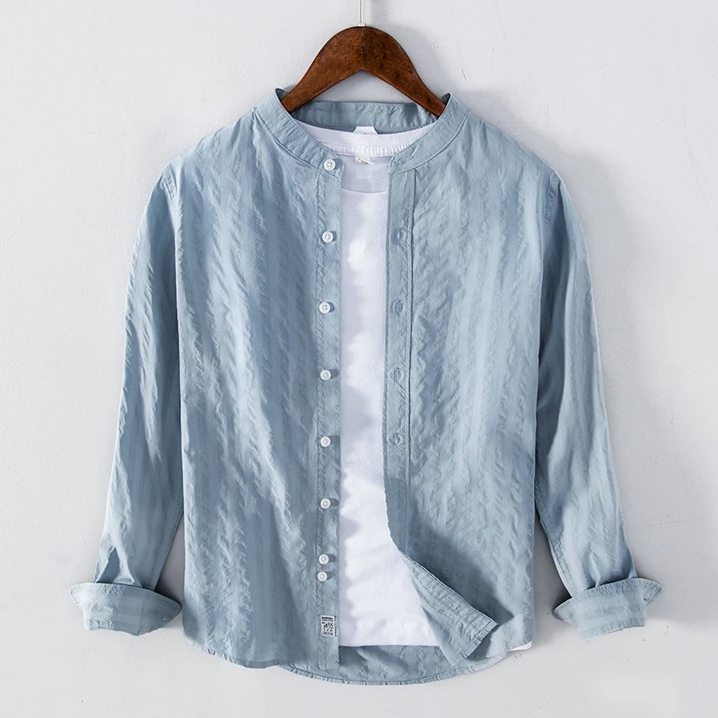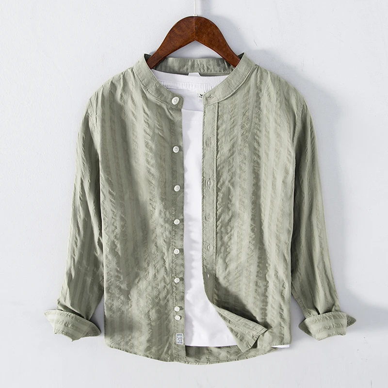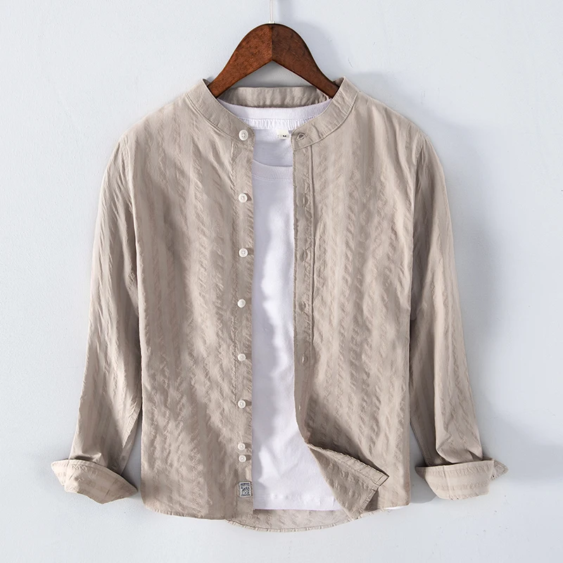 Upgrade your casual wardrobe with this Men’s Retro Striped Cotton Long Sleeve Stand Collar Shirt! Made from 100% cotton, it offers all – day comfort and breathability, perfect for year – round wear. The stand collar and single – breasted full opening give it a polished yet relaxed look, while the classic striped pattern adds a retro vibe. With regular long sleeves and a casual fit, it’s ideal for daily outings, weekends, or laid – back gatherings. Choose from light blue, dark gray, army green, white, or khaki, and find your perfect size from M to XXXL.