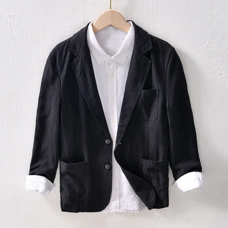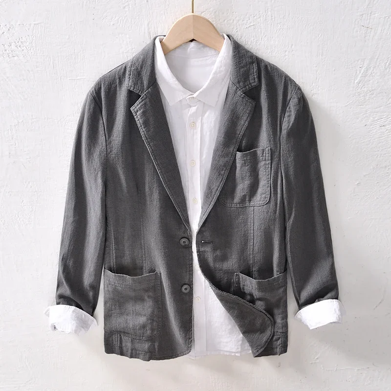 Mens Linen Casual Business Blazer Four Seasons Knit Single Breasted