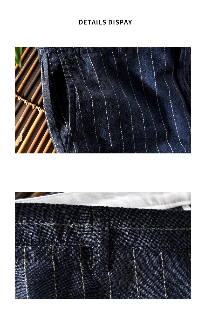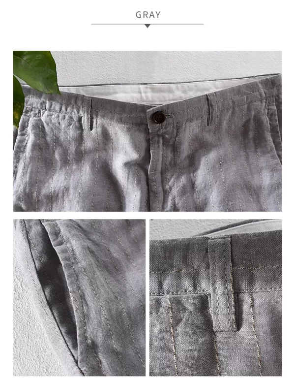 Men’s Striped Linen Cotton Shorts Four Seasons Daily Wear