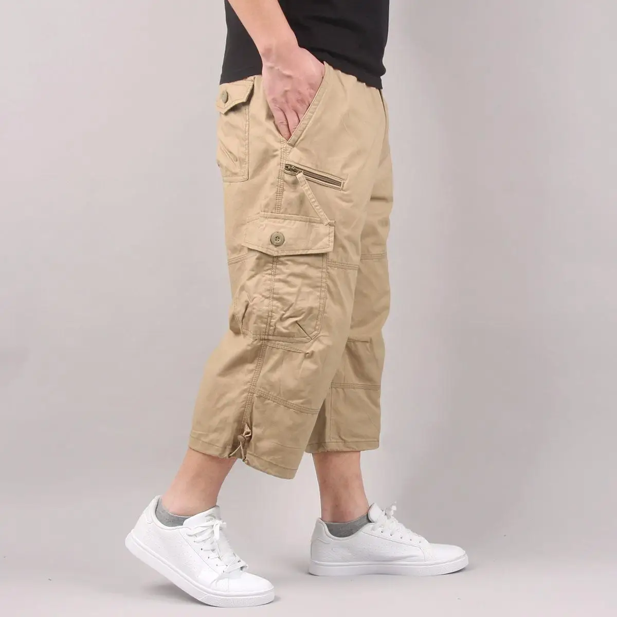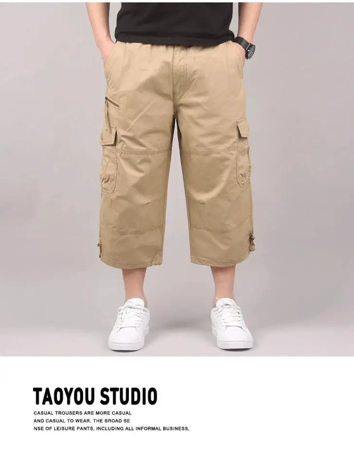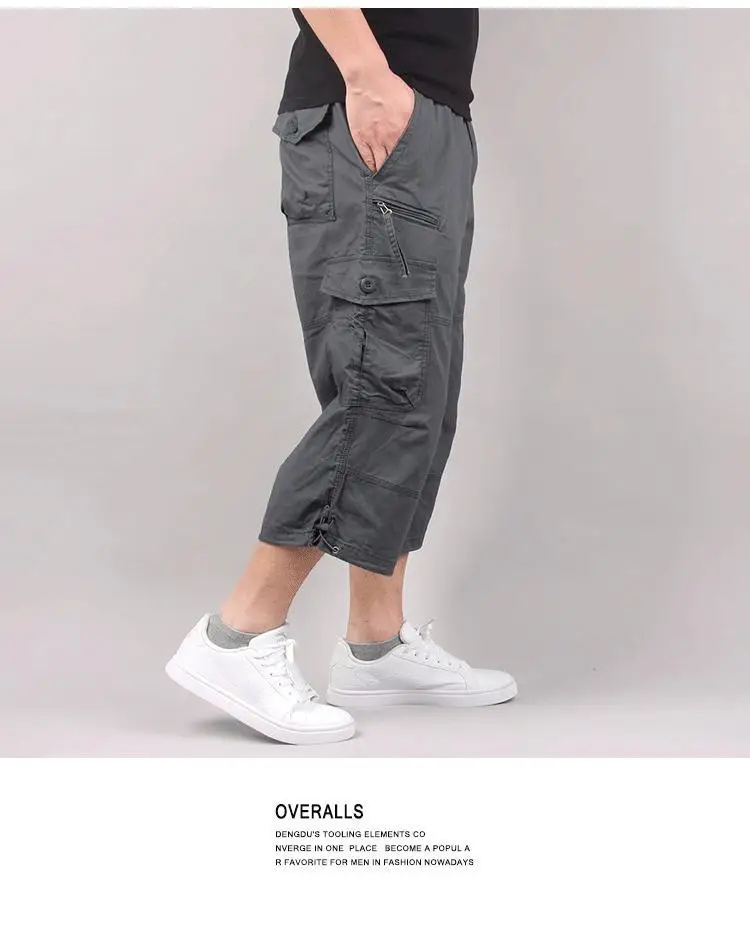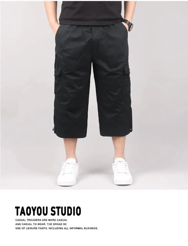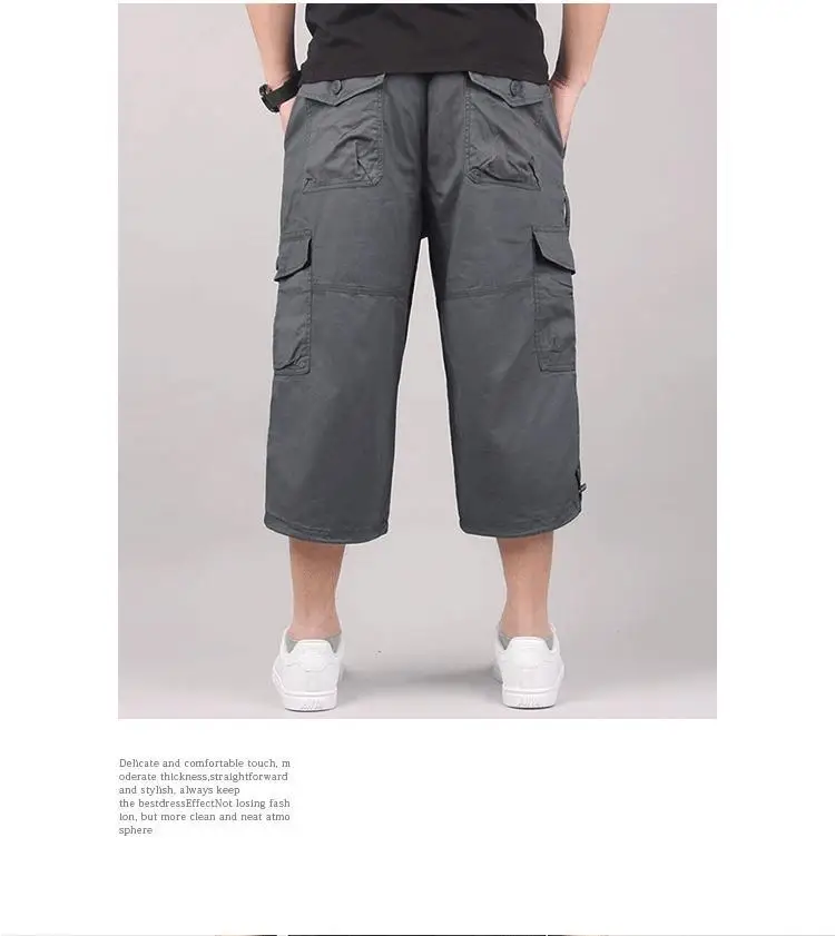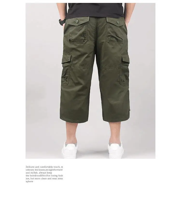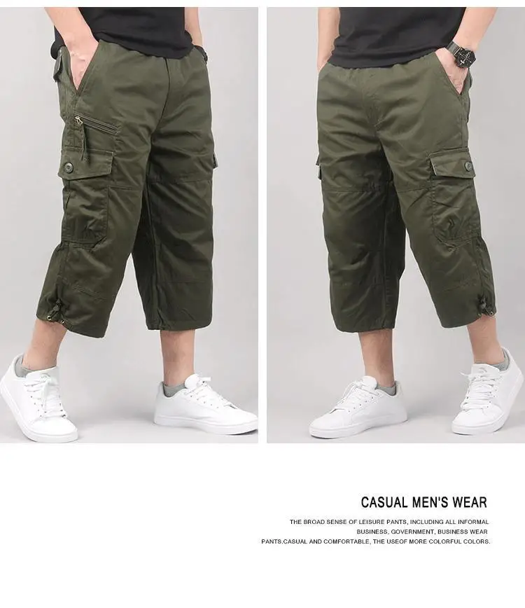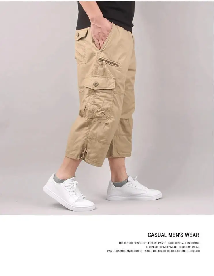 Mens Summer Cargo Shorts Loose Casual Elastic Waist Multi Pockets