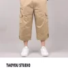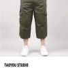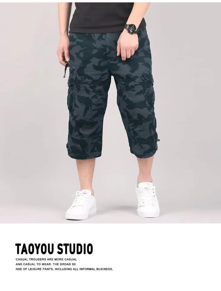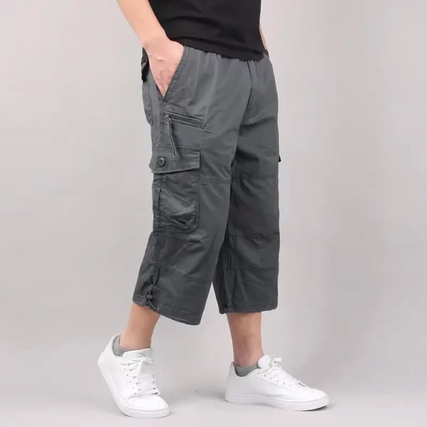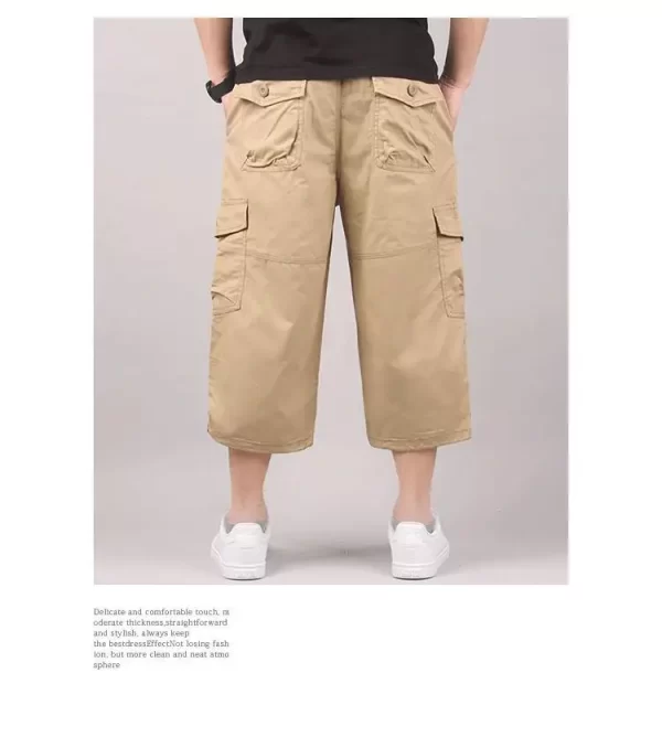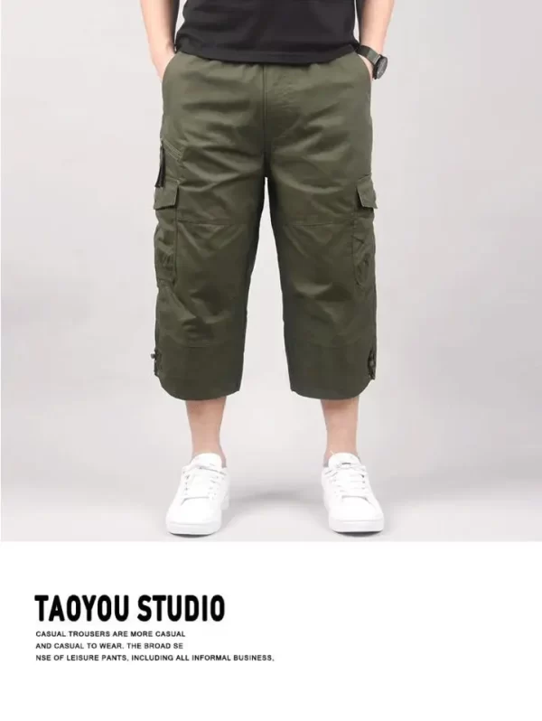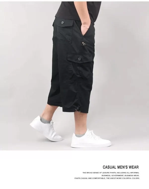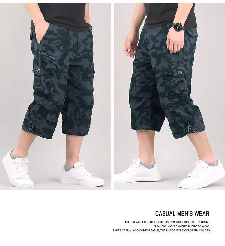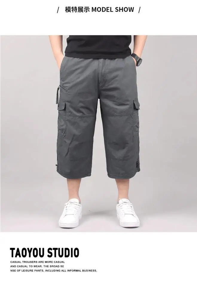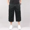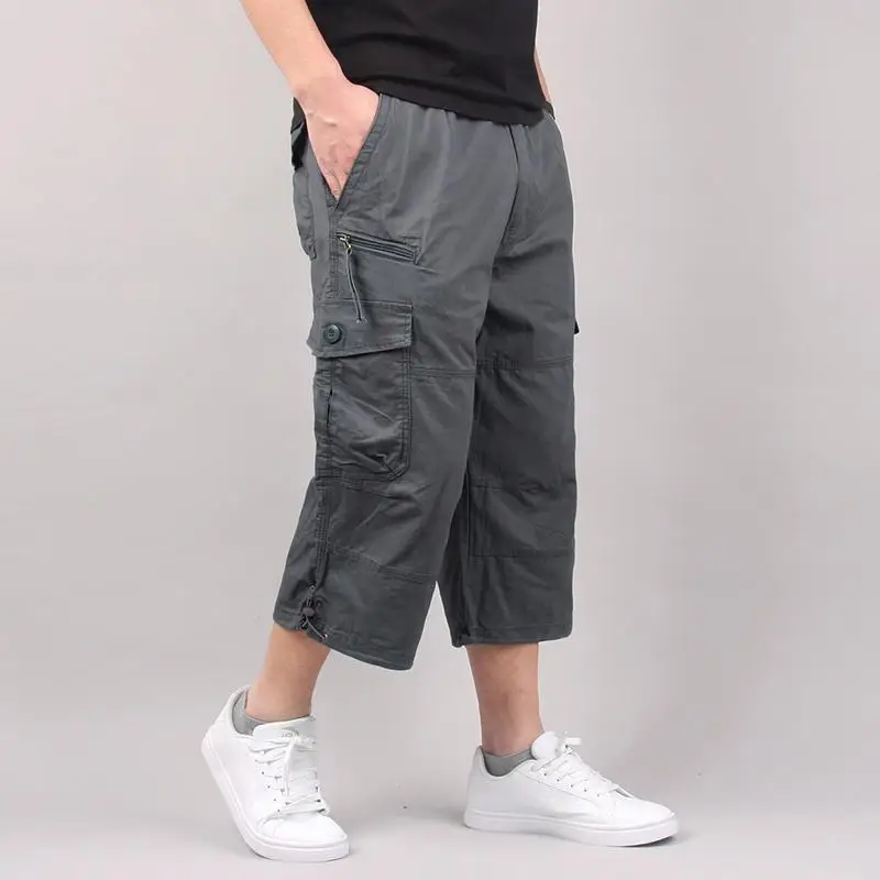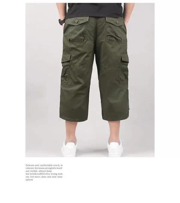 Mens Summer Cargo Shorts Loose Casual Elastic Waist Multi Pockets