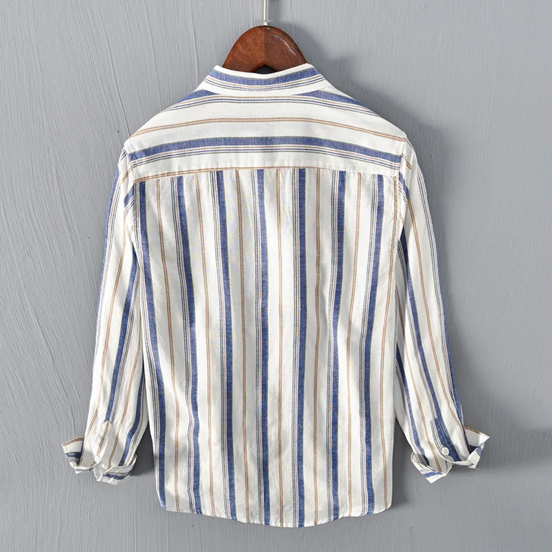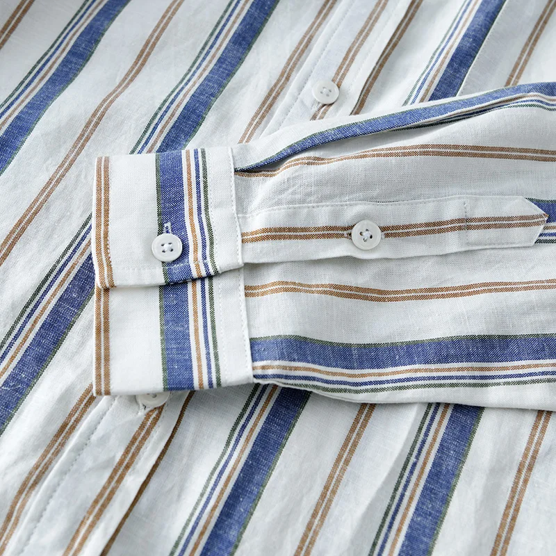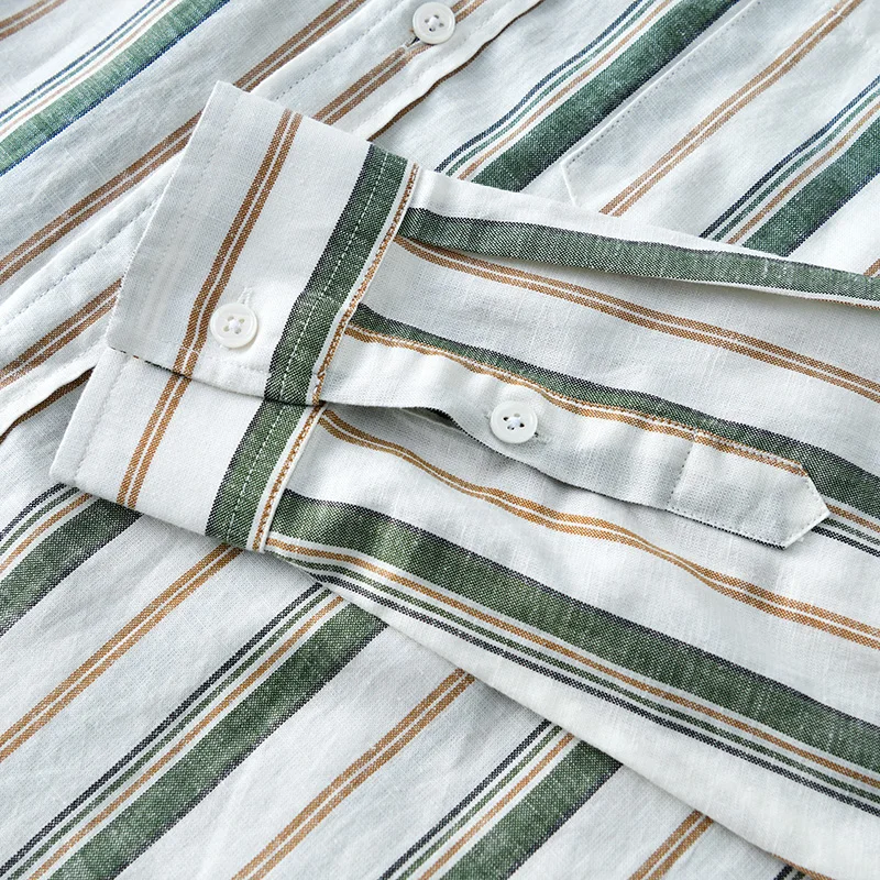 Mens Trendy Striped Long Sleeve Casual Shirt Linen Cotton Blend Four Seasons