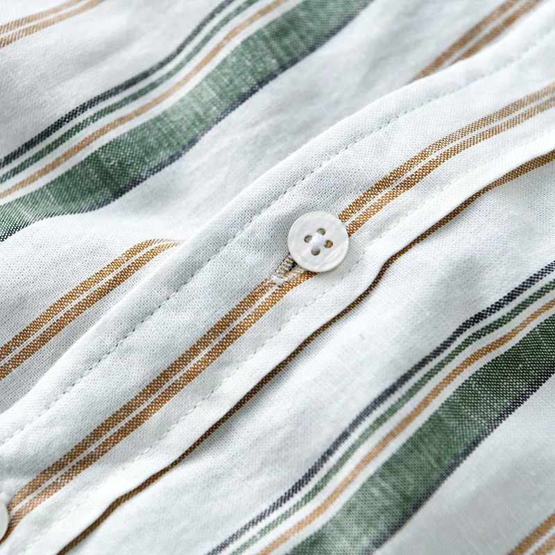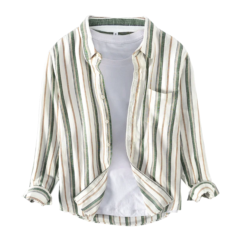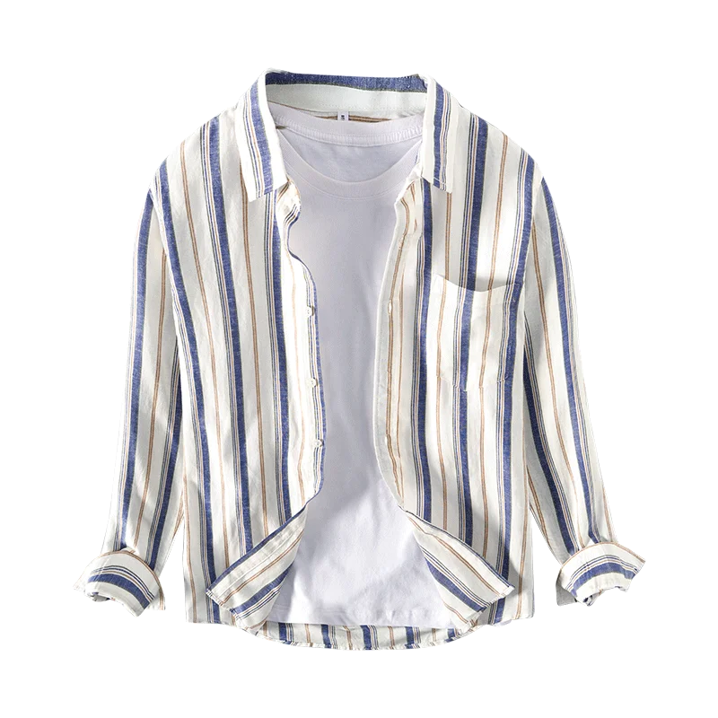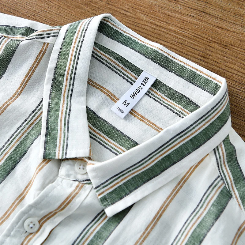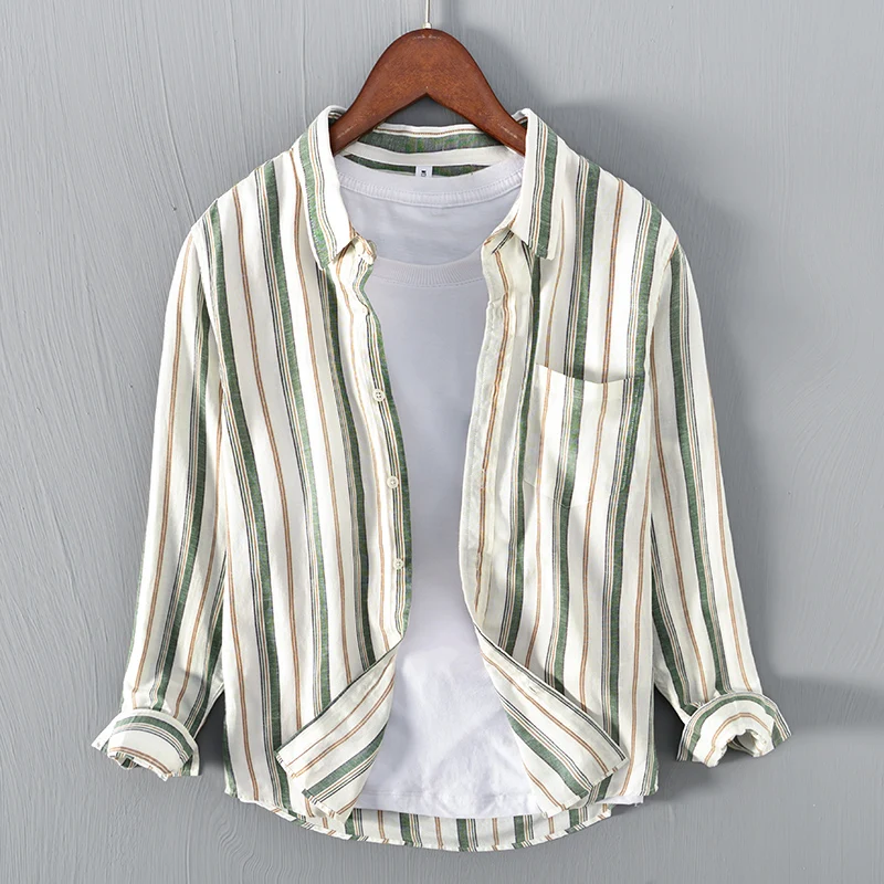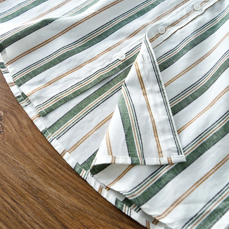 Mens Italian Beige Striped Long Sleeve Shirt Cotton Linen BreathableMens Italian Beige Striped Long Sleeve Shirt Cotton Linen Breathable